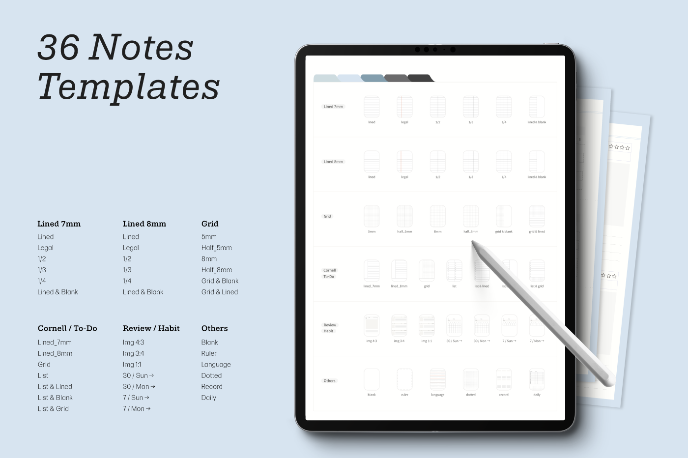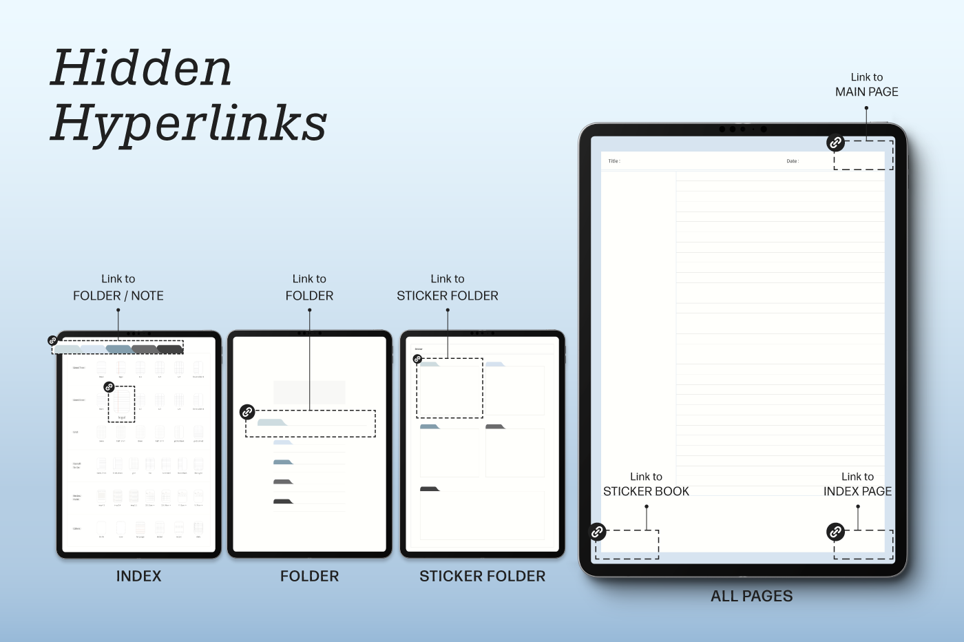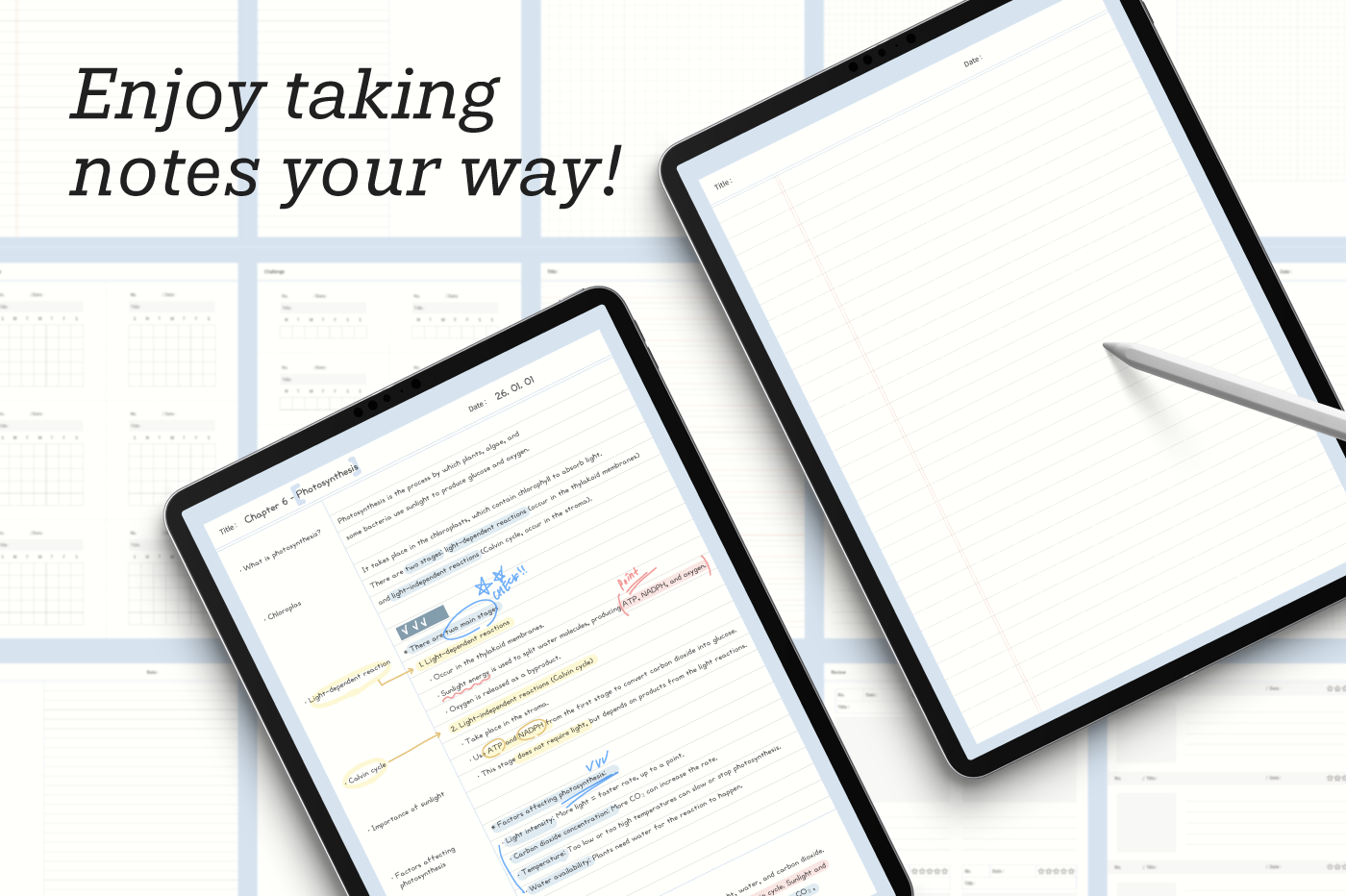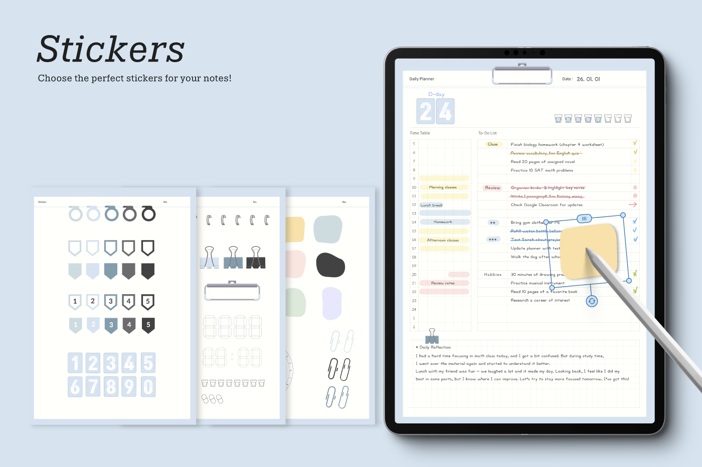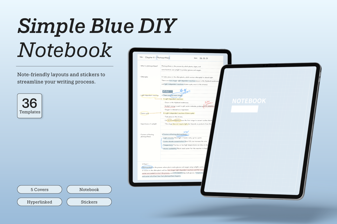Create your notebook! [Page Composition] - Covers (5) - Index - 26 Note Layouts - Review - To-Do List - Daily - Stickers - Hyperlinks