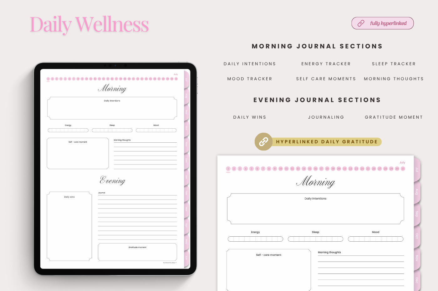 A wellness tool for mindful living, designed to enhance self-care in just 5 minutes daily. With gentle prompts for gratitude, self-care tracking, mood reflection, and intention-setting, it fosters calm and focus. Ideal for ADHD minds or anyone seeking balance, its soothing, flexible layout reduces stress and promotes self-awareness.
