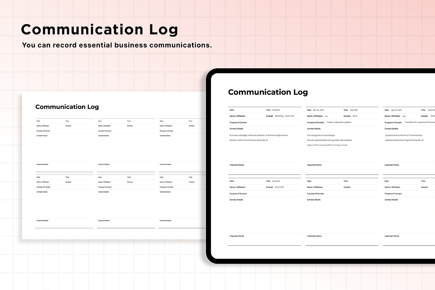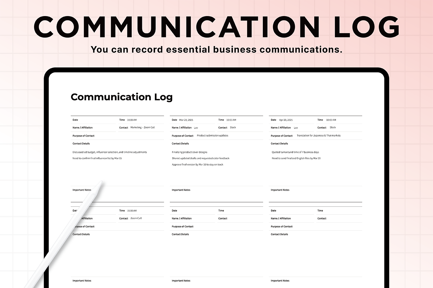 This page allows you to log six communication records—note important details to manage your work more efficiently.