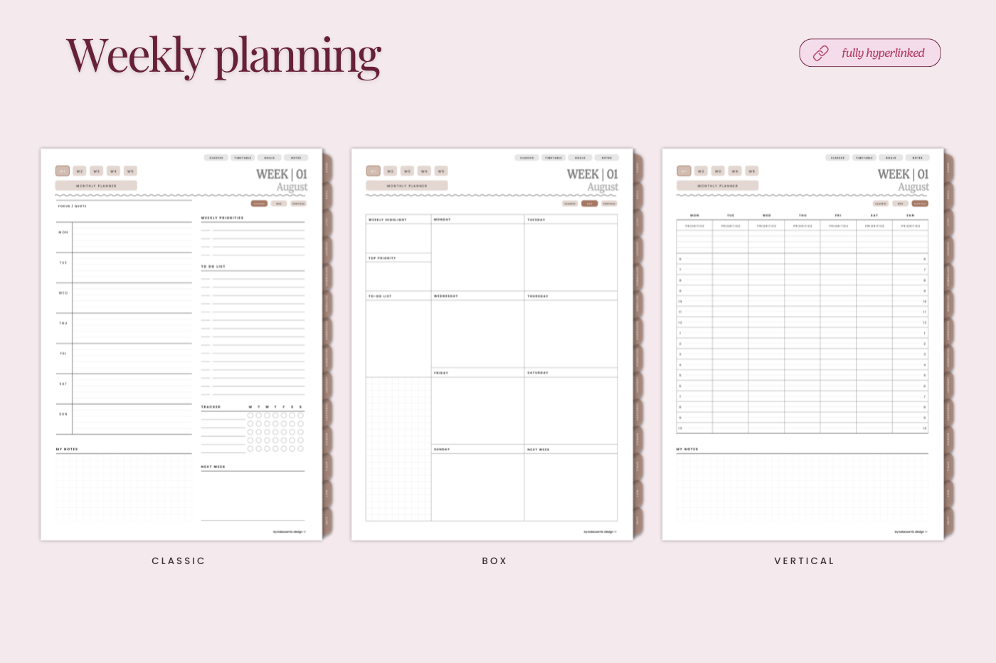 Unlock productivity and clarity with our professionally curated digital planners and templates. Elevate every aspect of your life with sleek designs tailored for organization, study, work, and well-being.