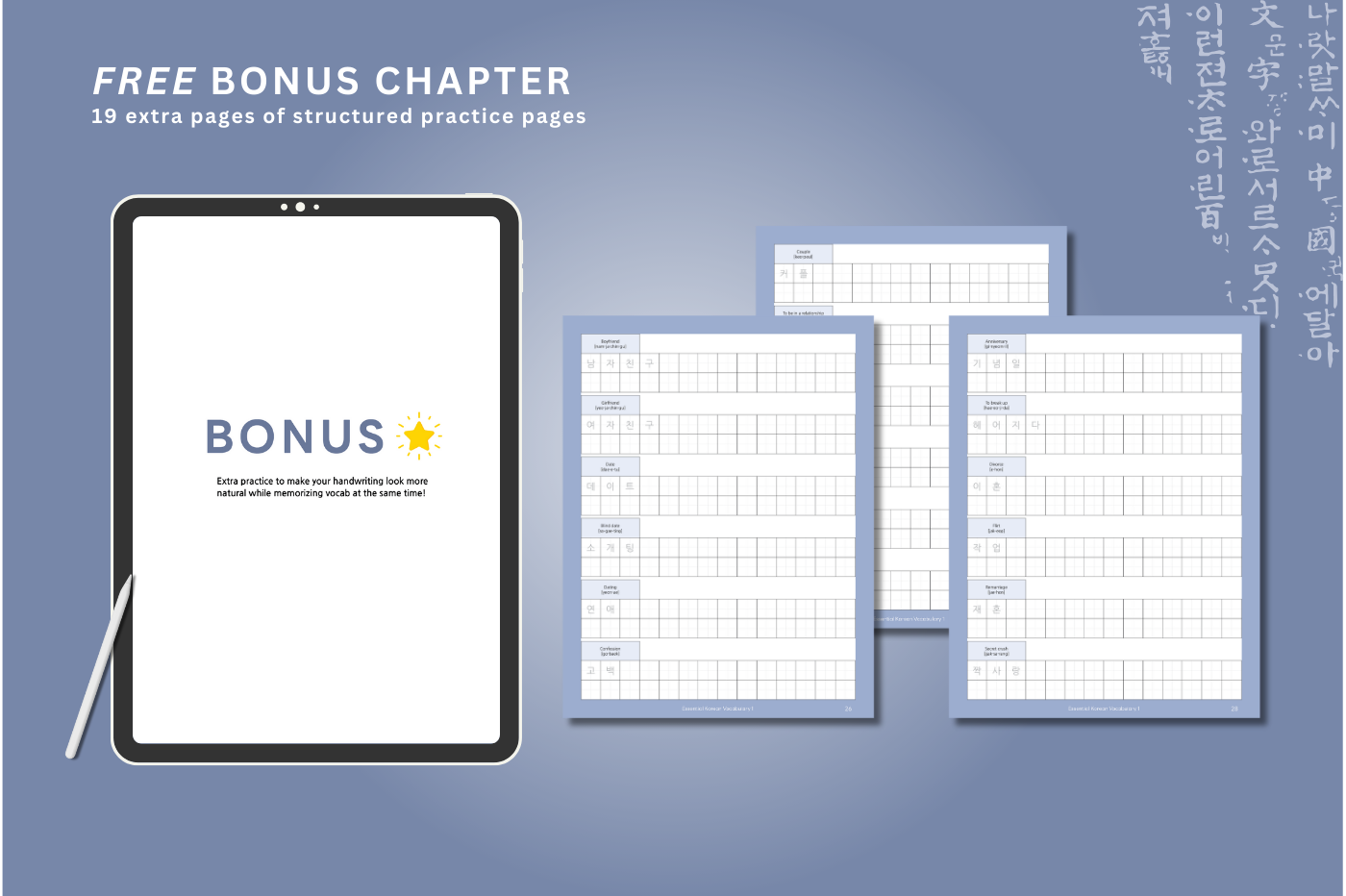 19 extra structured Hangul writing pages!