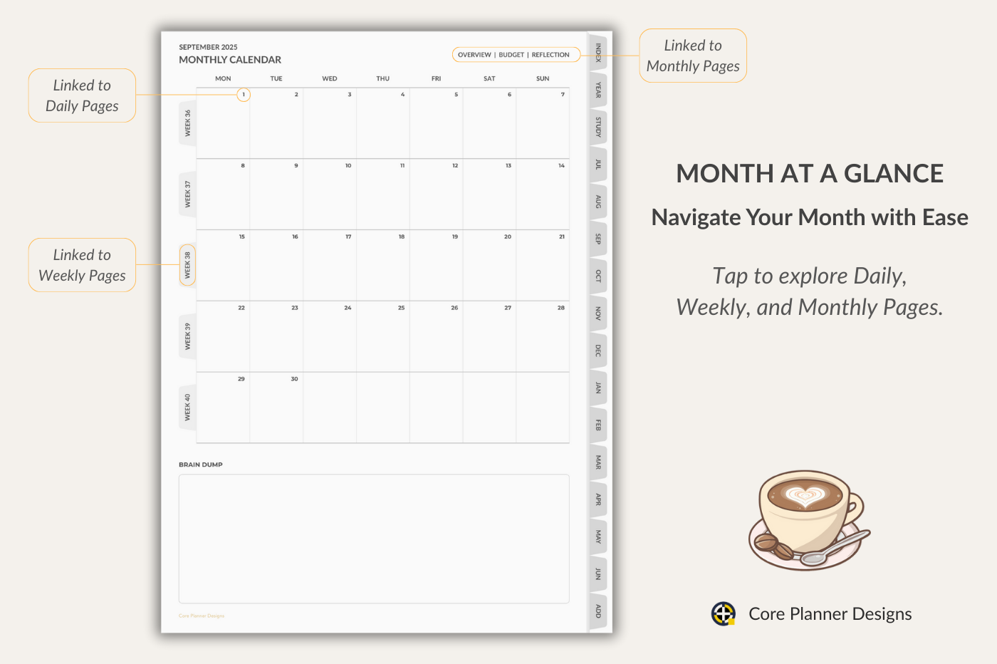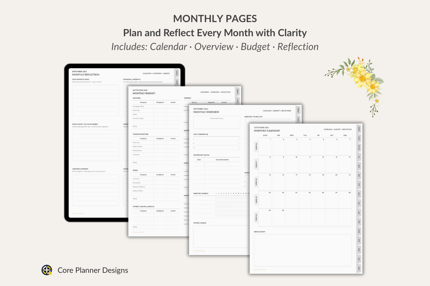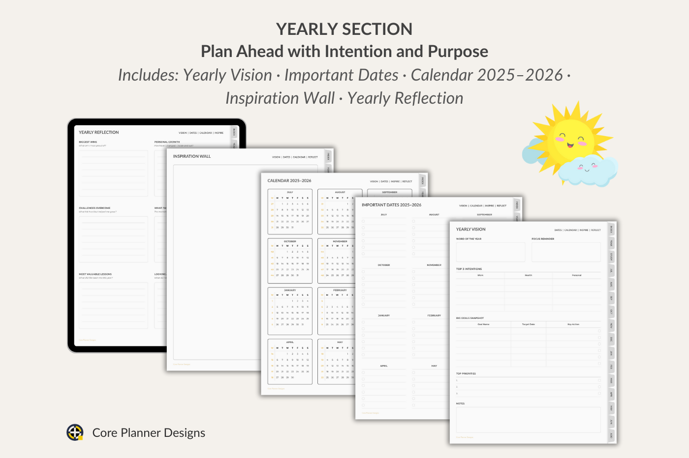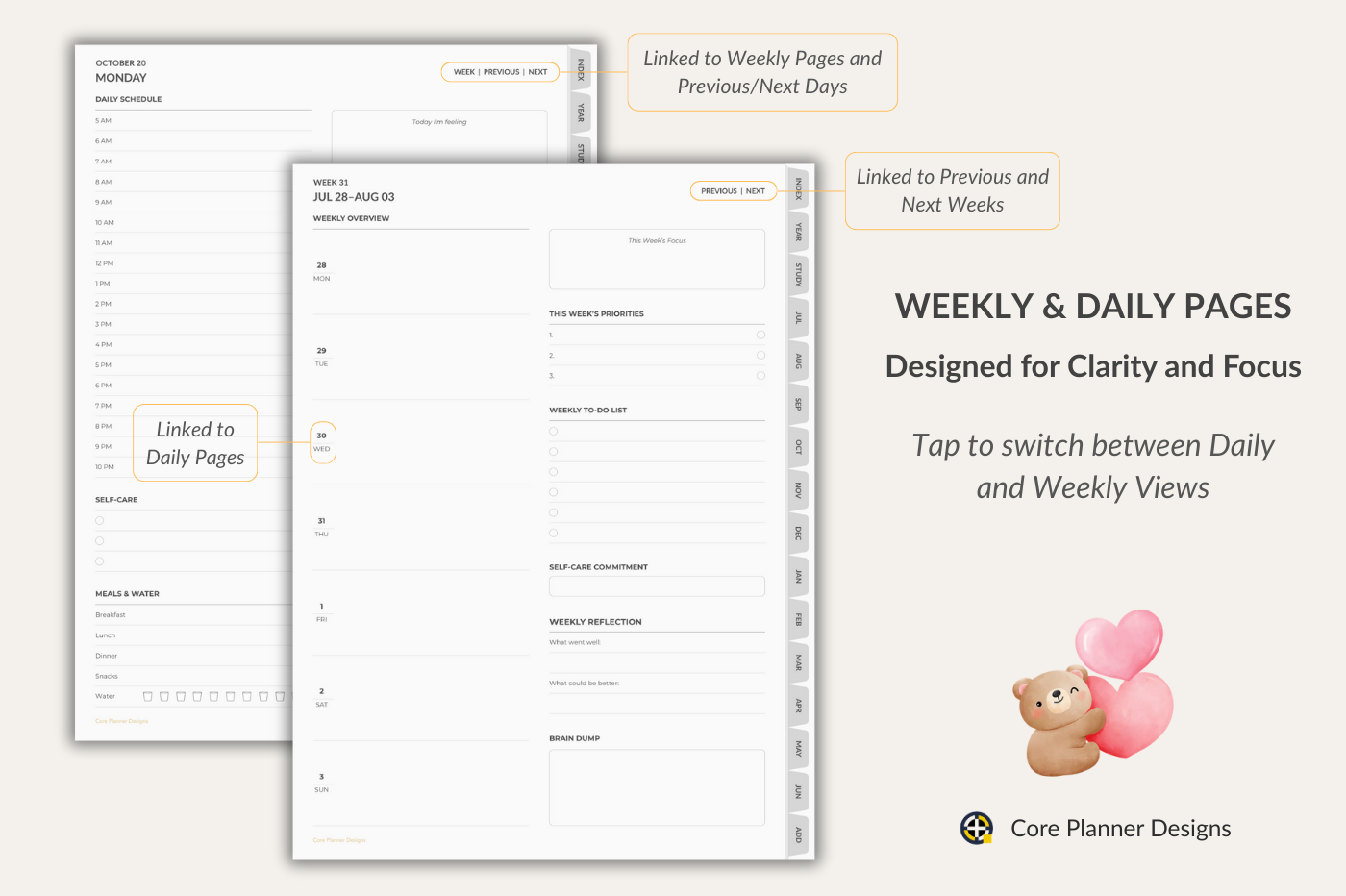 Do you ever feel overwhelmed by endless tasks, scattered notes, or messy schedules? At Core Planner Designs, we transform planning into a seamless and stress-free experience. Our premium digital planners and stickers combine elegant design with intuitive structure, helping you stay focused, organized, and in control every single day.