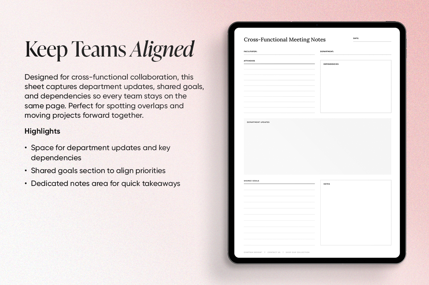 Chattan Design is a graphic design studio based in Scotland that specialises in creating sleek and modern digital planners. Focused on productivity, our mission is to create functional and intuitive tools for enhanced organisation. Our designs effortlessly integrate into the lives of professionals, students, and efficiency-seekers. Transform your planning into an enjoyable experience.