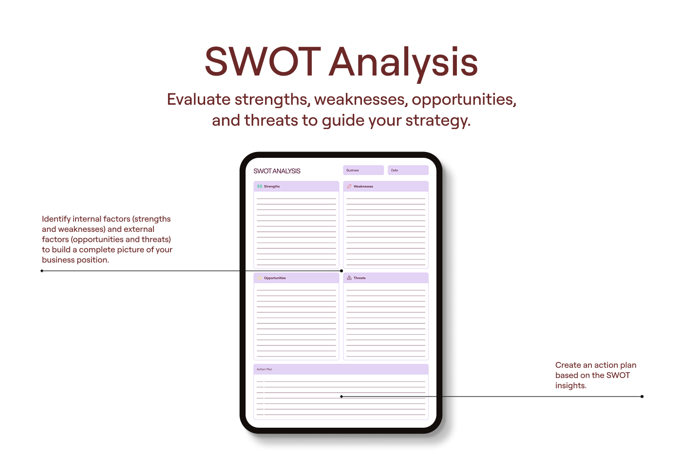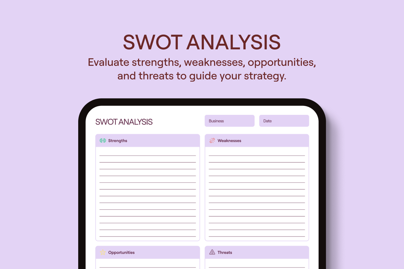 List your strengths,weaknesses,opportunities,and threats in one clear layout. This template helps you understand where you stand and plan smarter moves.