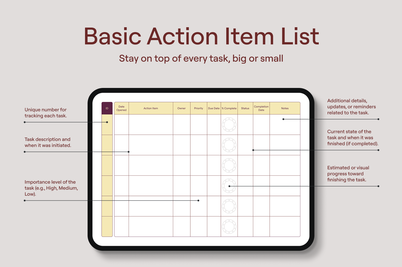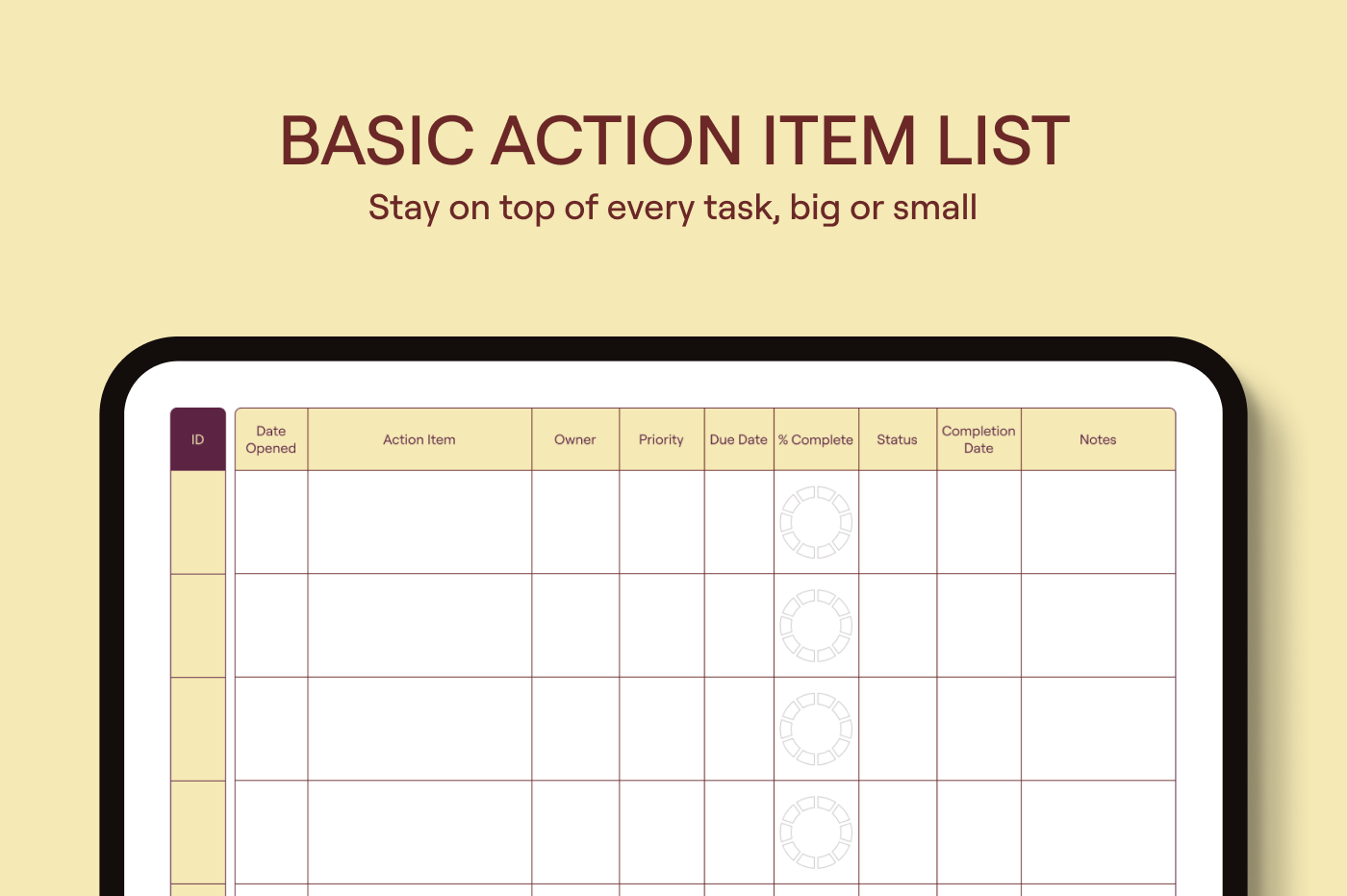 Capture your tasks,deadlines,and owners in one easy list. With everything clear and organized,you’ll stay productive and never miss a step.