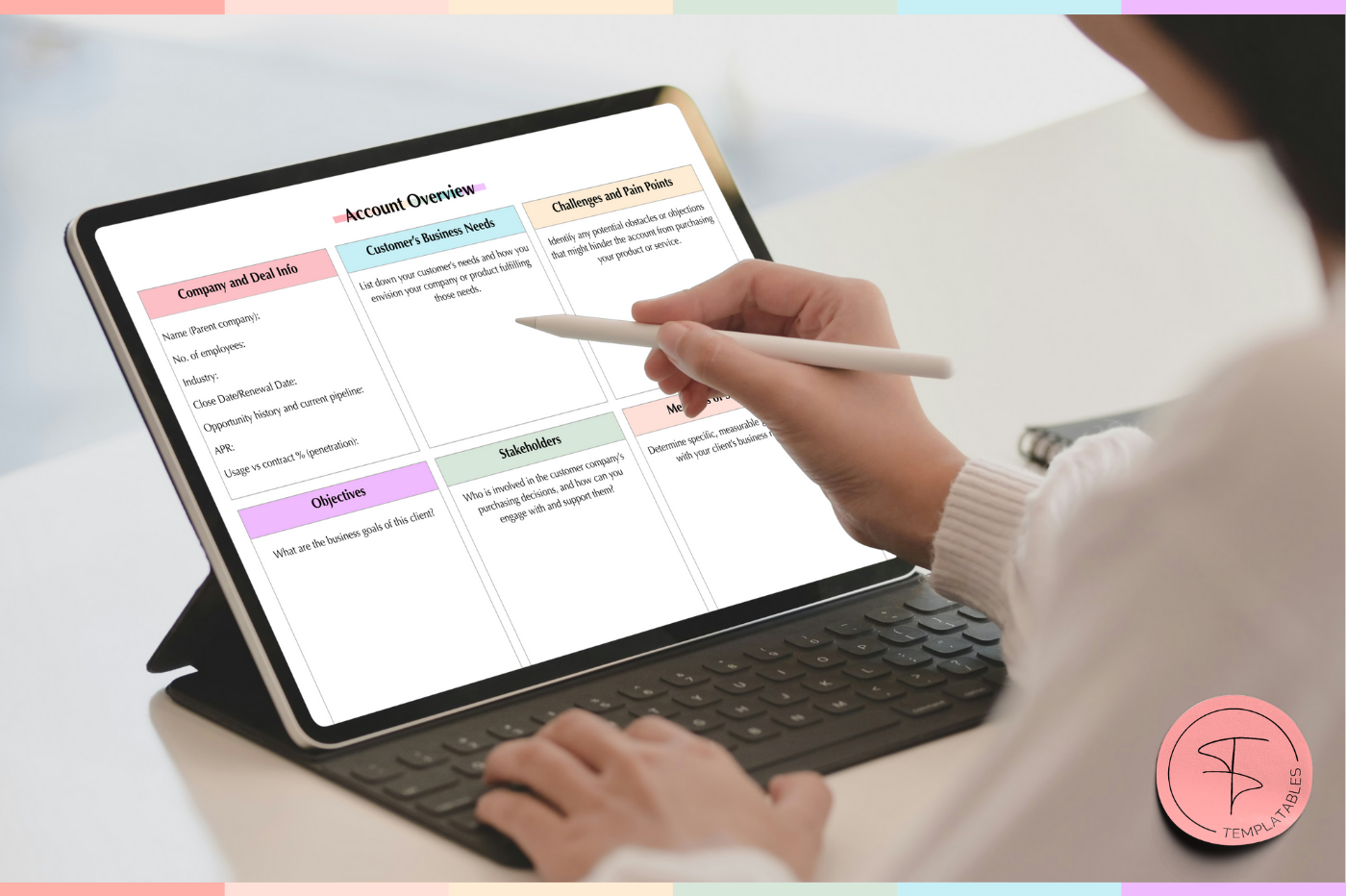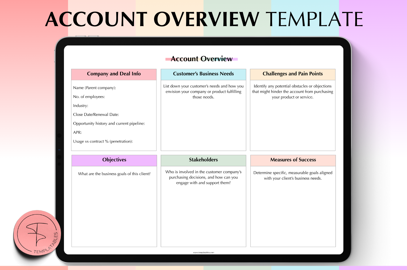 Capture key account details,goals and notes in one place. ✨Want more? We have a whole selection of templates and digital stationary for you! Check our shop on Marketplace for more @templatables 🫶 🙌