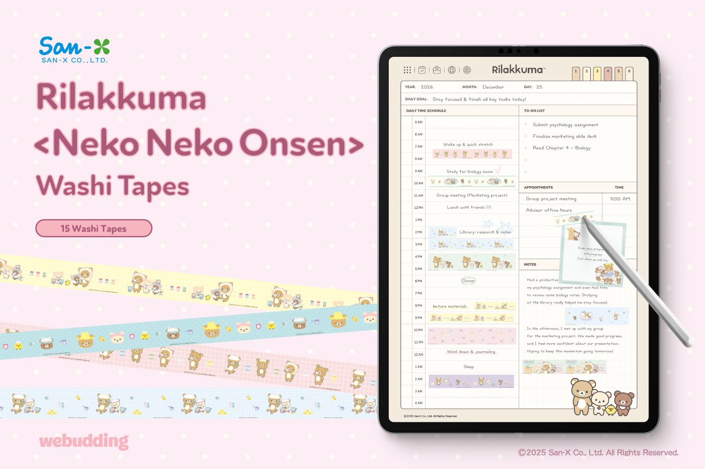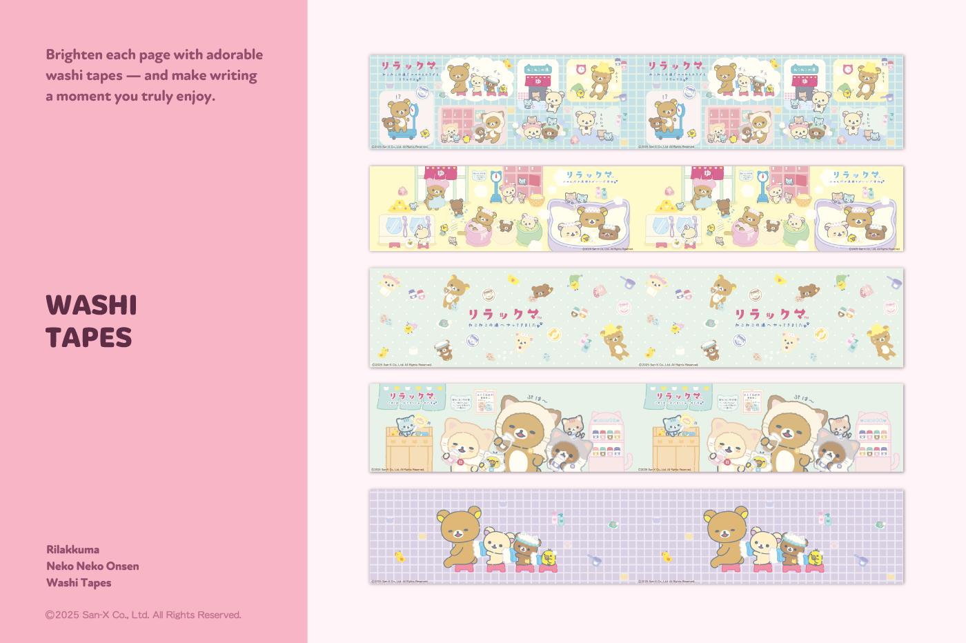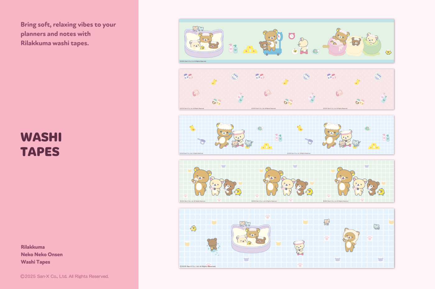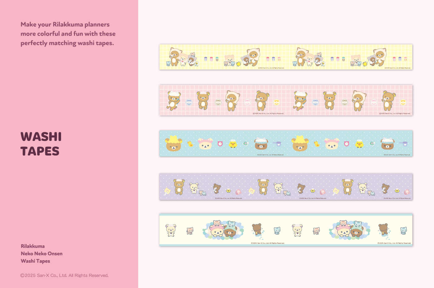 This product is for personal use only. Any unlawful use of the content may results in revoke of access. [Sticker Composition] - Rilakkuma <Neko Neko Onsen> Washi Tapes (15) This product is permitted to a License agreement between San-X Co., Ltd. and Webudding Inc. and unauthorized reproduction of this product and its characters is prohibited.