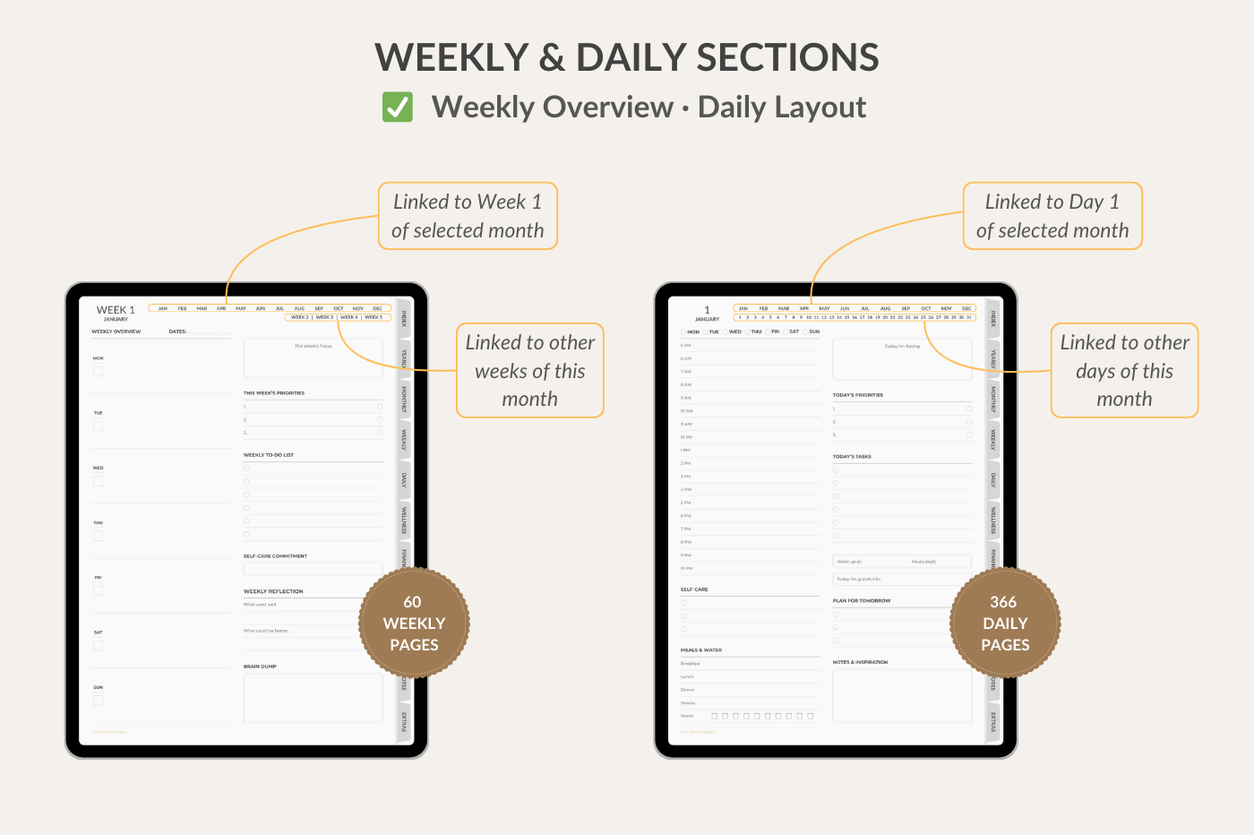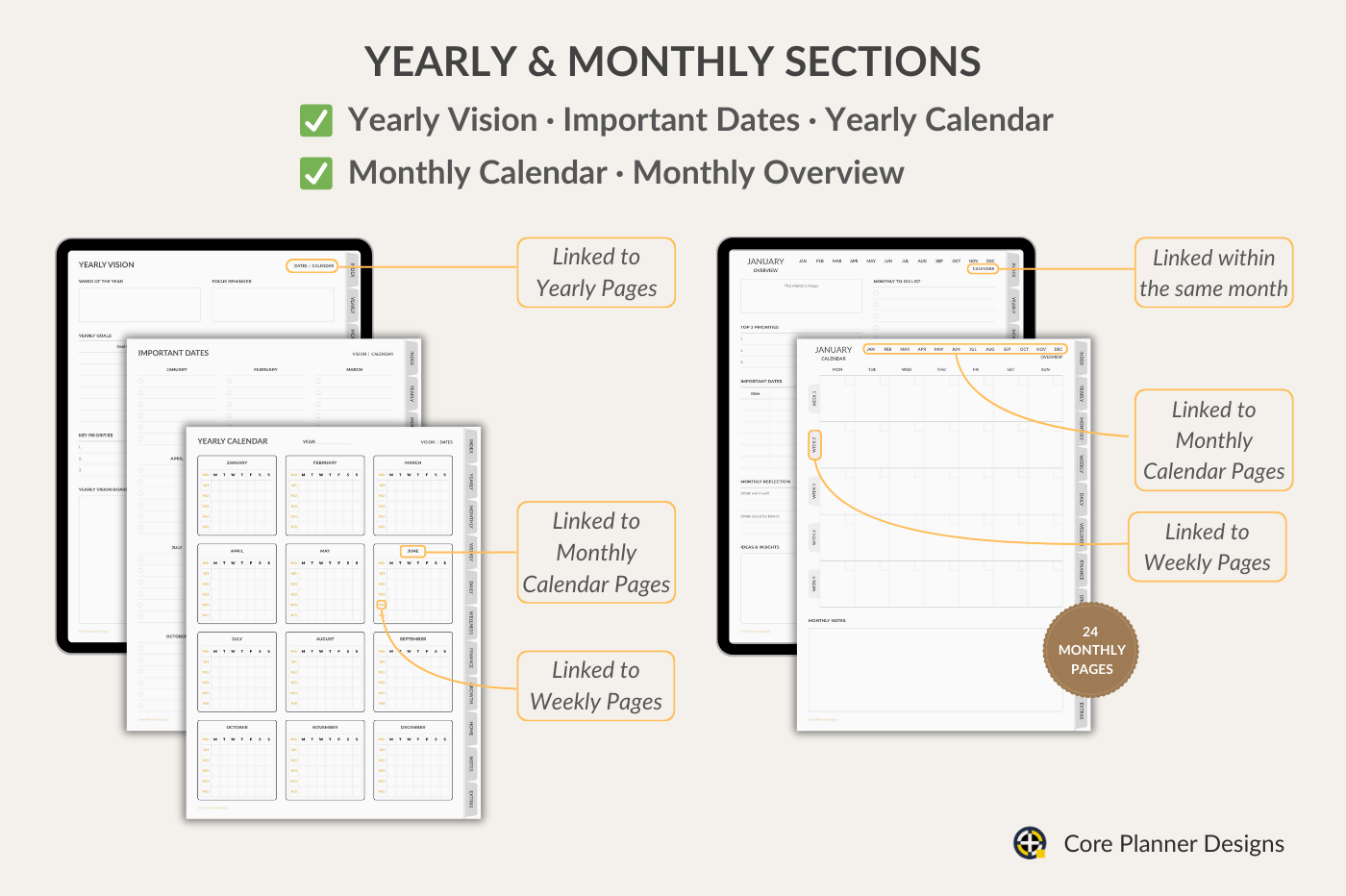 Do you ever feel overwhelmed by endless tasks, scattered notes, or messy schedules? At Core Planner Designs, we transform planning into a seamless and stress-free experience. Our premium digital planners and stickers combine elegant design with intuitive structure, helping you stay focused, organized, and in control every single day.
