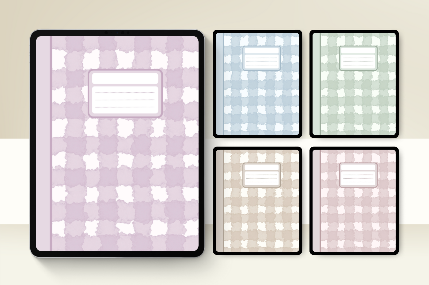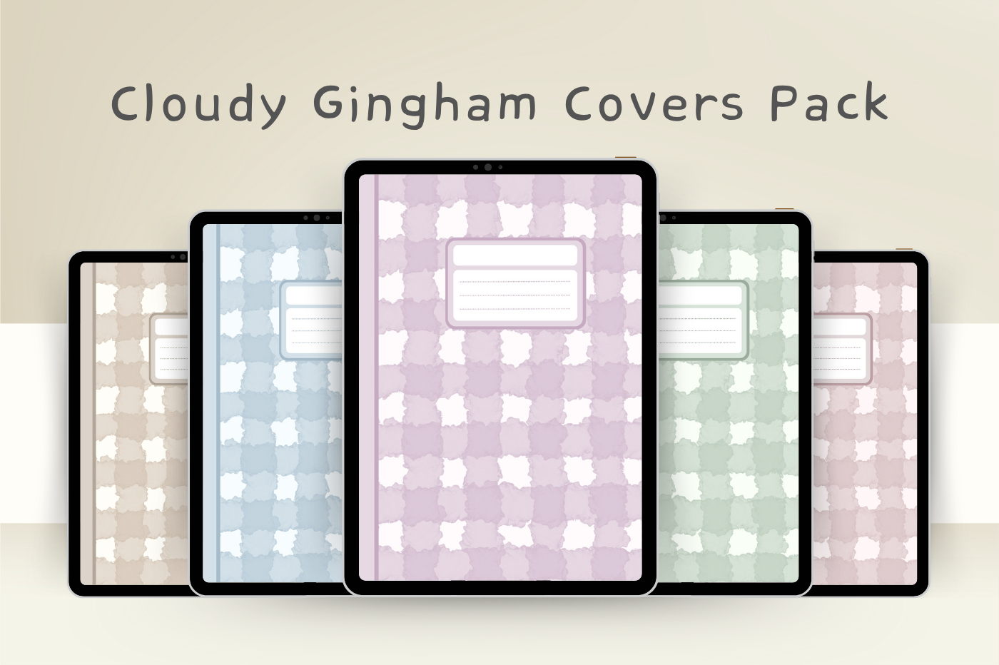 Add a dreamy aesthetic to your Goodnotes with this Cloudy Gingham Cover Set. Designed with a soft checkered pattern that feels cozy and cute, perfect for study, journaling, or daily planning. ❖ Includes 5 colors variation ❖ Aesthetic gingham checkered pattern ❖ Goodnotes Standard size ❖ Crisp, high-quality visuals ❖ Portrait Only