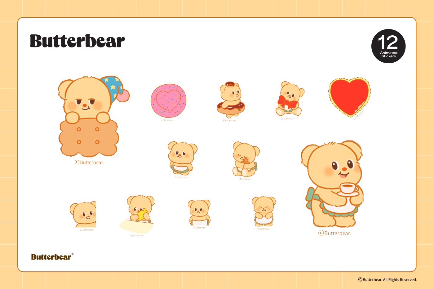 This product is for personal use only. Any unlawful use of the content may results in revoke of access. [Sticker Composition] - Animated Butterbear Character (12)