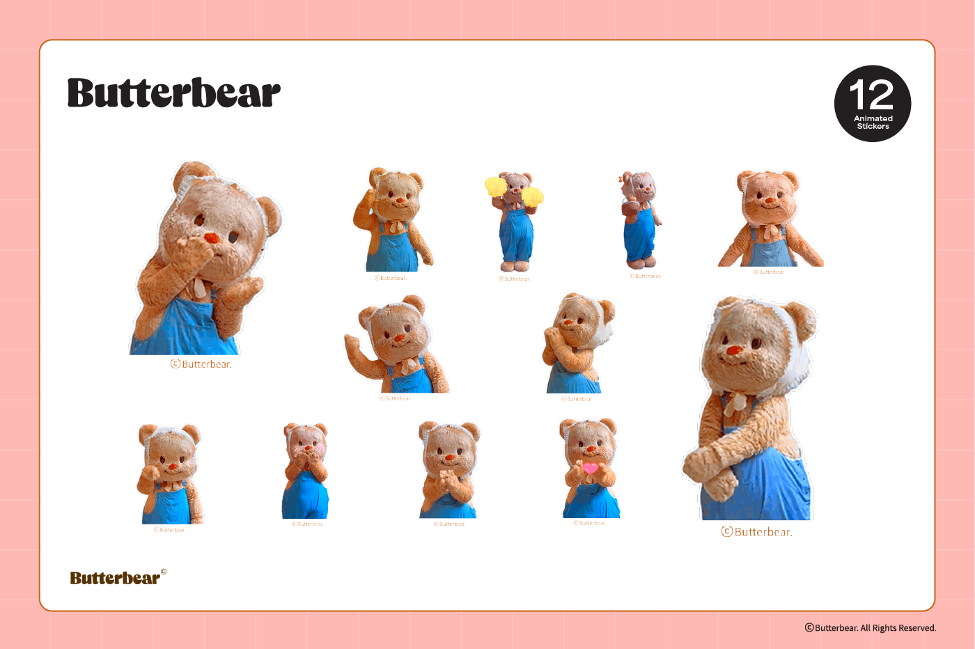 This product is for personal use only. Any unlawful use of the content may results in revoke of access. [Sticker Composition] - Animated Butterbear Character (12)