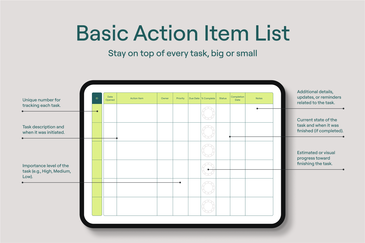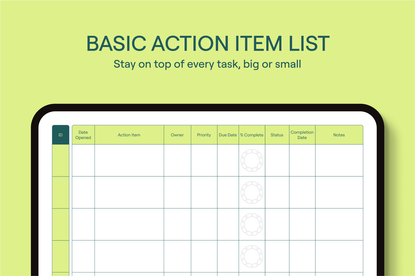 Capture your tasks,deadlines,and owners in one easy list. With everything clear and organized,you’ll stay productive and never miss a step.