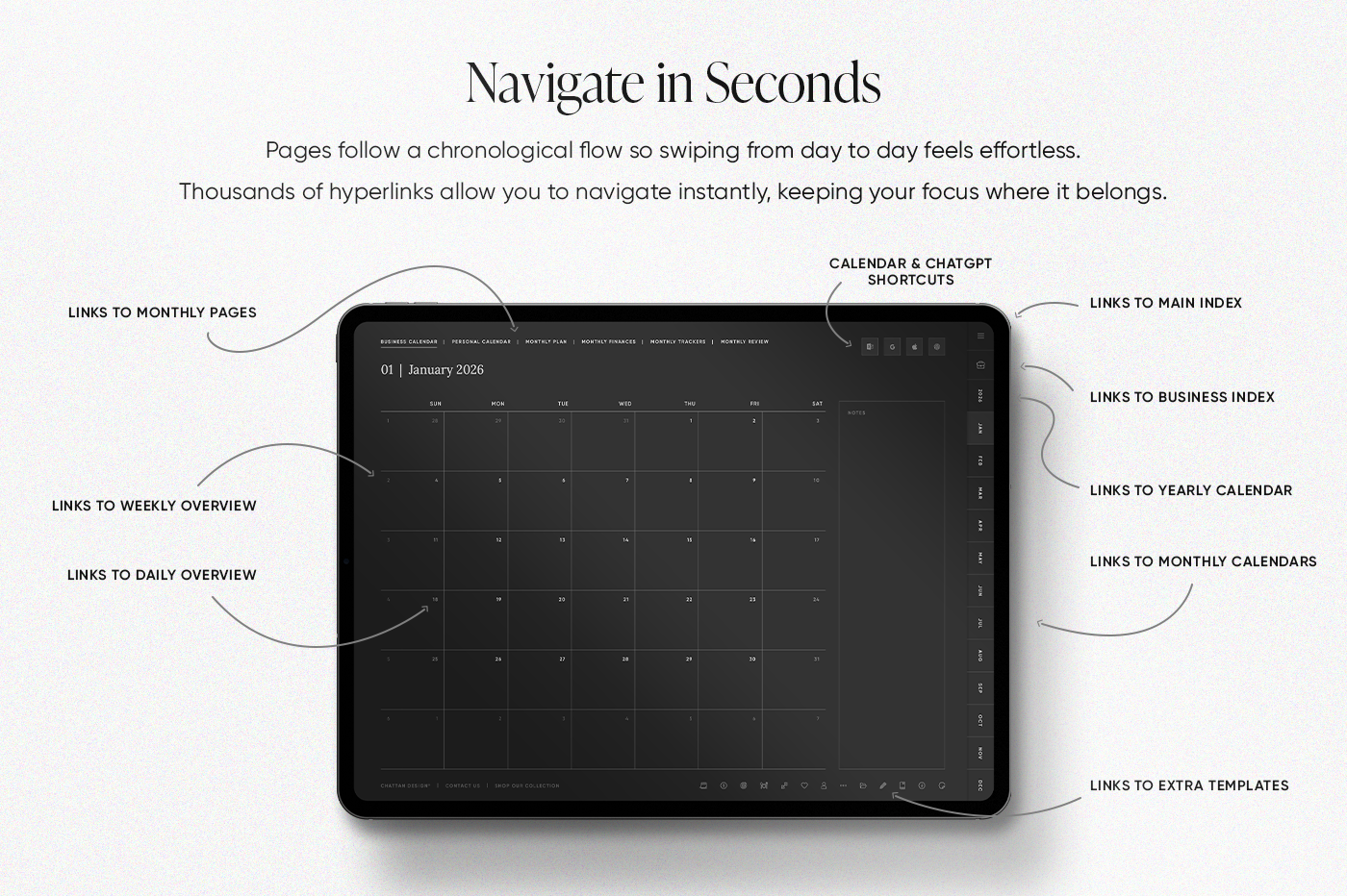 The 2026 Advanced Business Planner is made for people who get things done. Whether you’re building a business, leading a team, or running everything on your own, it keeps you organized and focused on what actually matters. You’ll find shortcuts for Apple, Google, and Outlook calendars so your plans stay synced wherever you go, plus built-in ChatGPT shortcuts to help you brainstorm ideas, write content, or get quick answers when you need them. Every page is designed to make planning simple and clear, with space to map out goals, track progress, and keep your day running smoothly. It also comes with 10 free covers, so you can switch up the look anytime you like. It’s everything you need to plan with purpose and keep your business moving forward all year long.