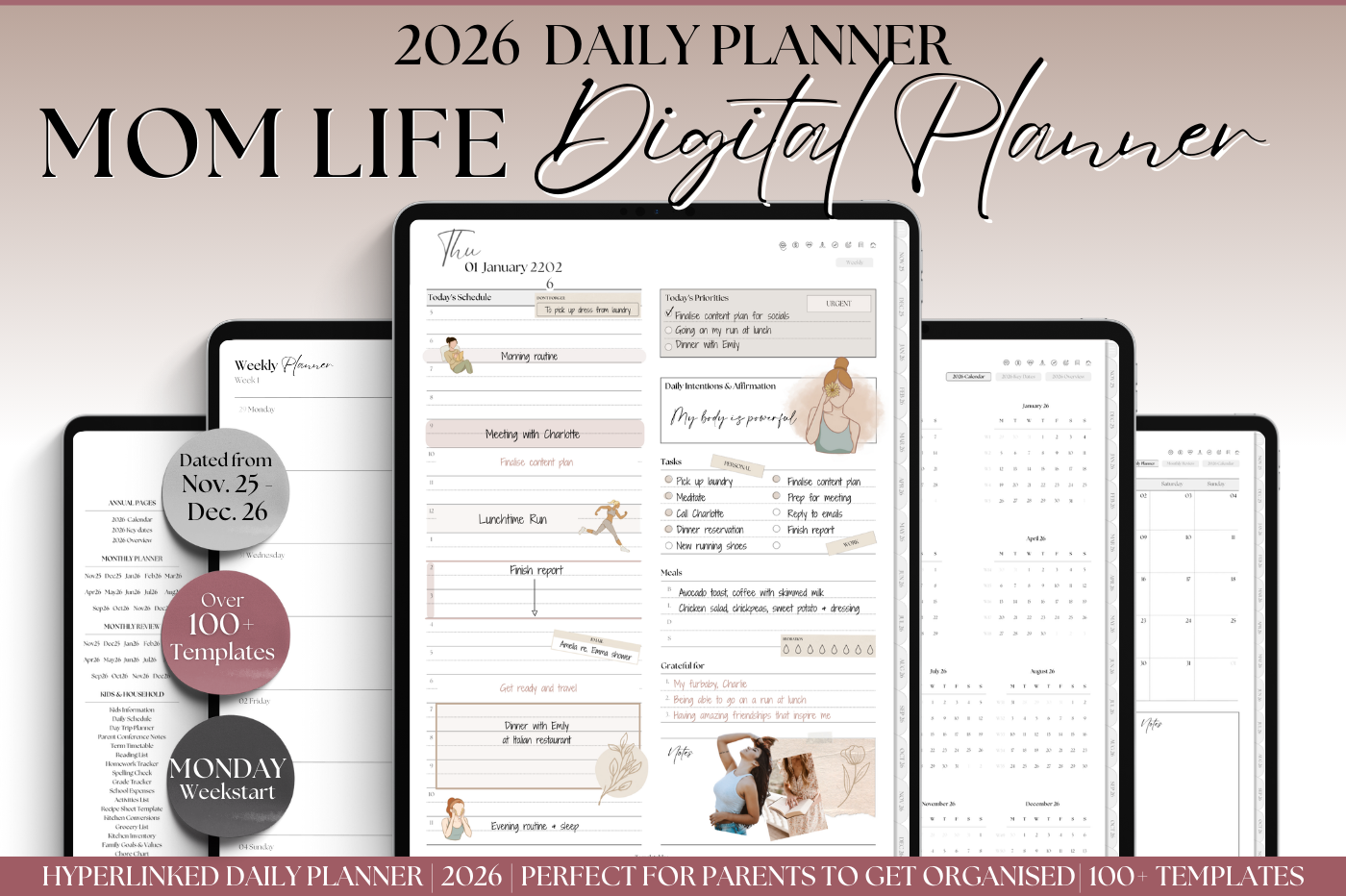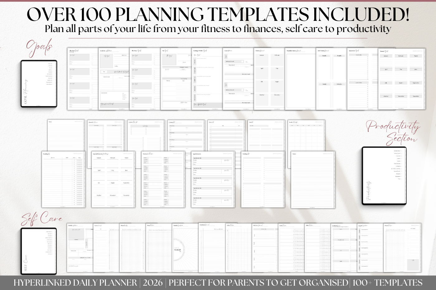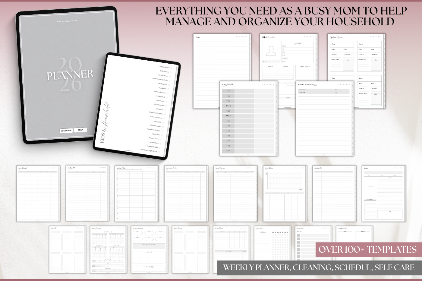 Designed by a mom for moms, this planner is the ultimate tool to keep your family organized while making time for yourself. Manage schedules, track bills, plan meals and keep your home running smoothly! Focus on you with dedicated space for self-care & well-being ✔ 5 Weekly pages: Planner, family schedule, cleaning, meal planning & self-care ✔ Daily, monthly & annual planning pages ✔ 100+ templates for home, fitness, finances, kids & goals Stay on top of everything, without forgetting yourself