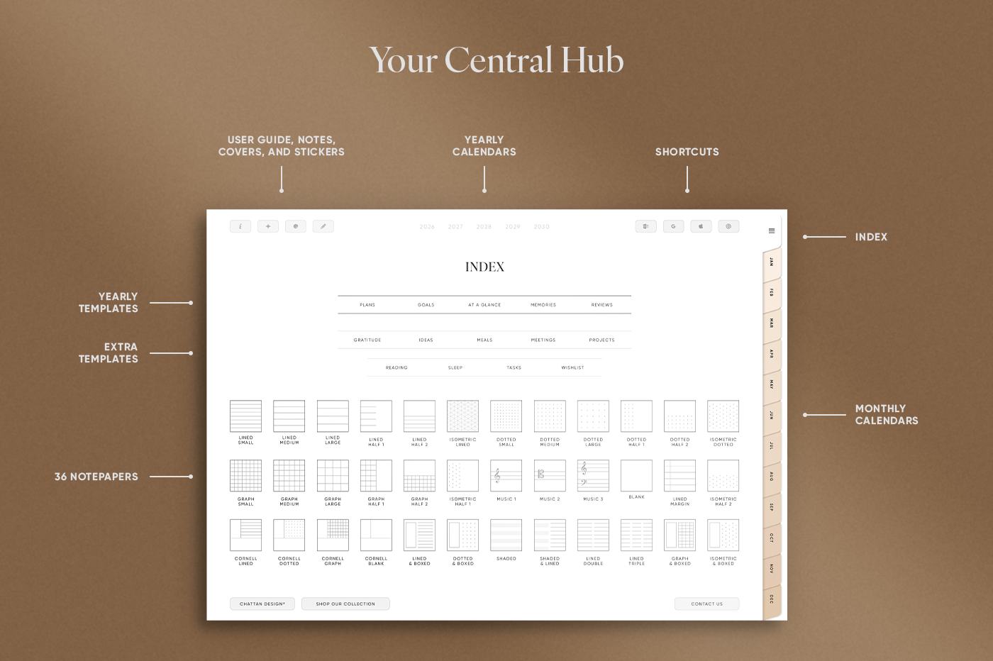 Chattan Design is a graphic design studio based in Scotland that specialises in creating sleek and modern digital planners. Focused on productivity, our mission is to create functional and intuitive tools for enhanced organisation. Our designs effortlessly integrate into the lives of professionals, students, and efficiency-seekers. Transform your planning into an enjoyable experience.