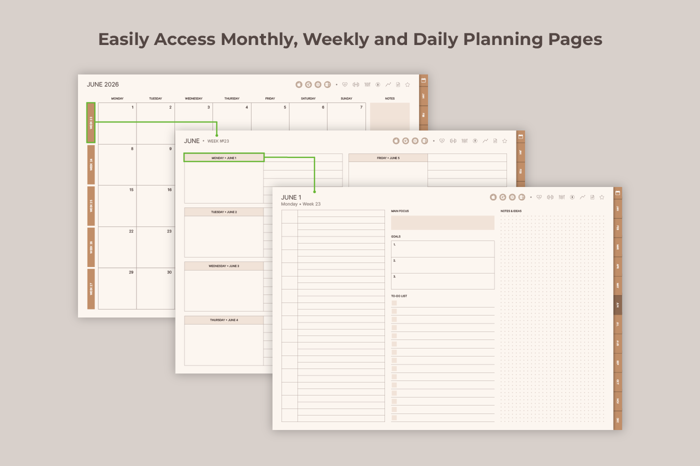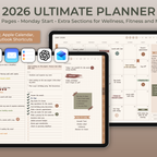 This 2026 Ultimate Planner is a comprehensive digital planner designed to support every aspect of your life, from daily routines to long-term goals. With dedicated sections for wellness, fitness, nutrition, finances, and projects, this planner is your go-to companion for staying organized and motivated all year long. Integrated Apple Calendar, Reminders, Apple Mail, Google Calendar, ChatGPT, and Outlook links let you easily add events, set reminders, and send emails directly from your planner.