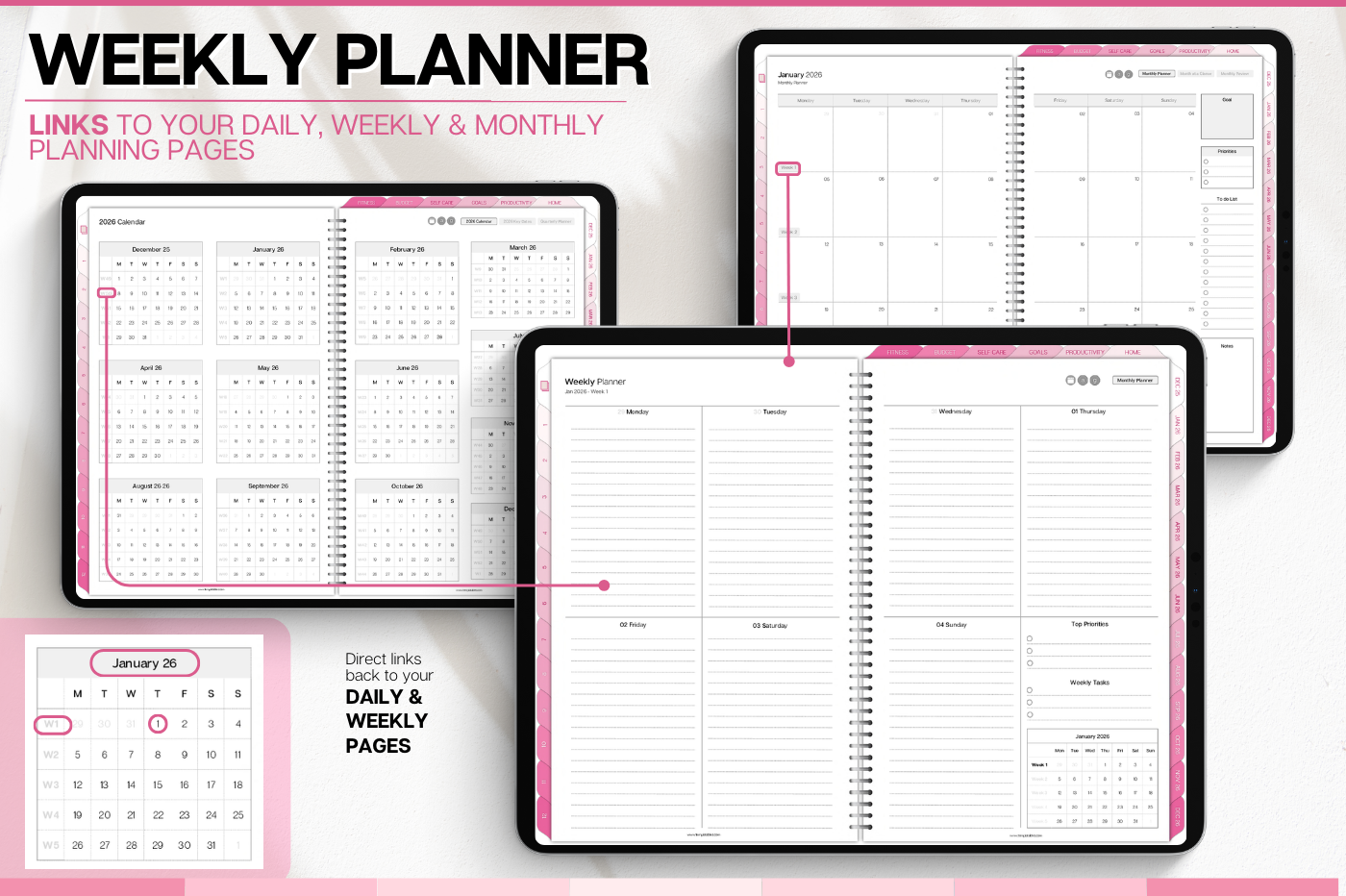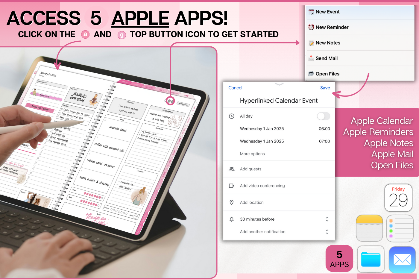 Plan smarter in 2026! This Daily Planner helps you organize every part of your life with clean, functional layouts that make planning effortless. • Daily, weekly & monthly planners for structure & flow • Time blocking for productivity & balance • 100+ lifestyle planning templates, 12 notebooks and 40 page templates • 300+ bonus digital covers 🔗 Integration with Apple & Google Calendars, Chat GPT, MS Outllok, Apple Notes, Files, Mail & Reminders Plan simply. Live intentionally.