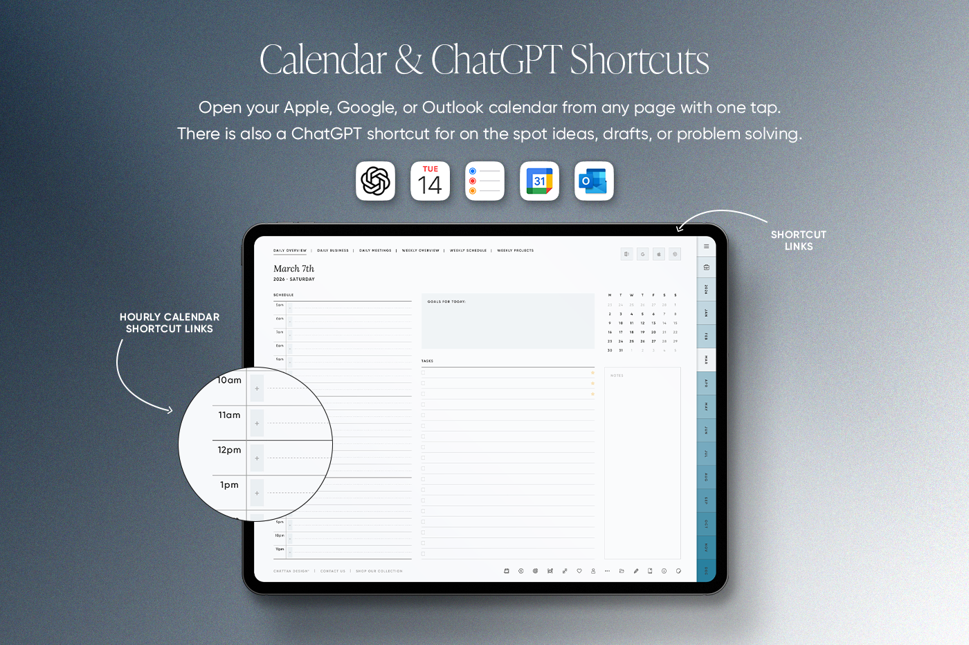 The 2026 Advanced Business Planner is made for people who get things done. Whether you’re building a business, leading a team, or running everything on your own, it keeps you organized and focused on what actually matters. You’ll find shortcuts for Apple, Google, and Outlook calendars so your plans stay synced wherever you go, plus built-in ChatGPT shortcuts to help you brainstorm ideas, write content, or get quick answers when you need them. Every page is designed to make planning simple and clear, with space to map out goals, track progress, and keep your day running smoothly. It also comes with 10 free covers, so you can switch up the look anytime you like.