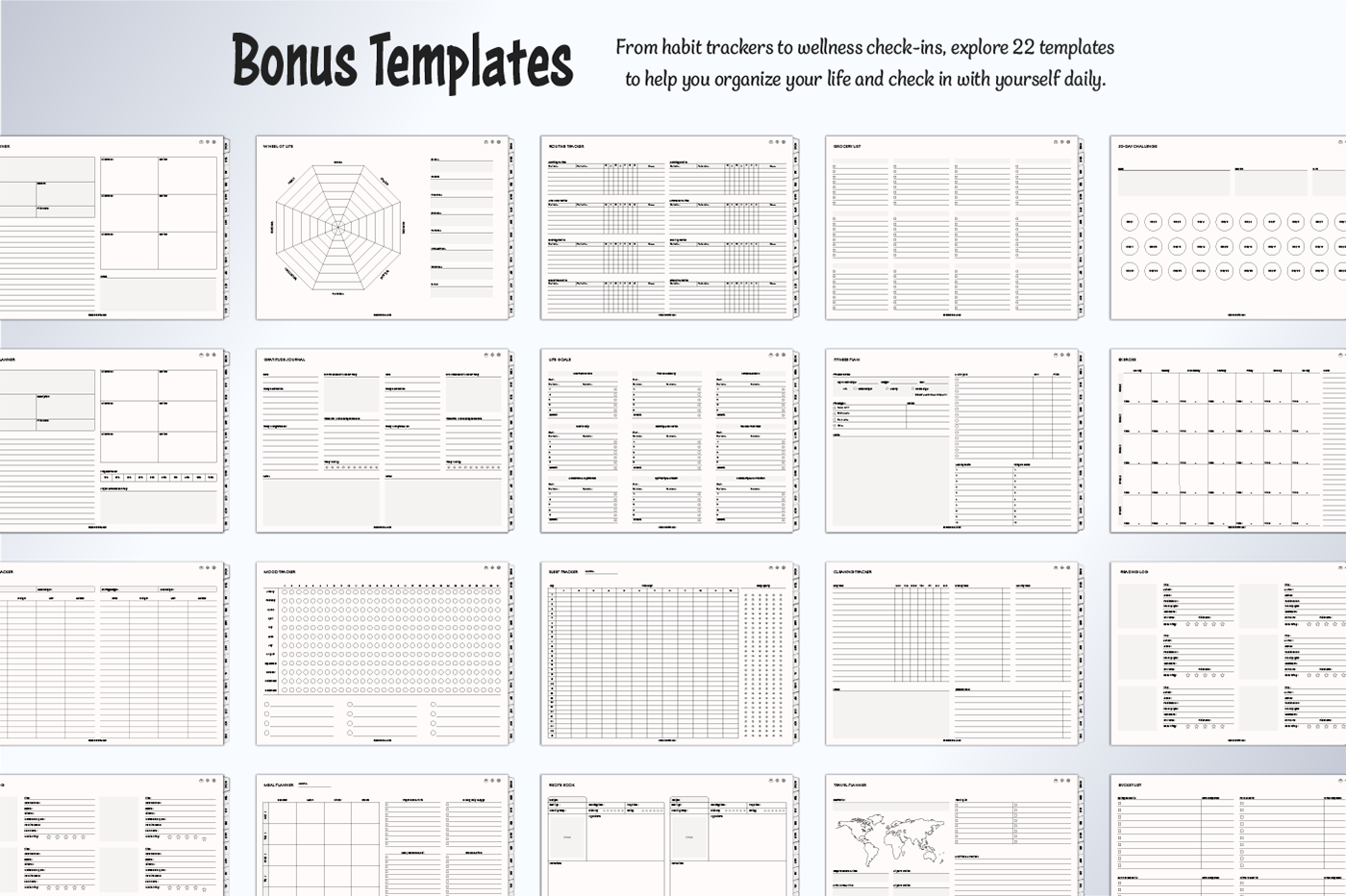 A 2026 all-in-one planner that includes productivity-boosting templates as well as self-care tools.