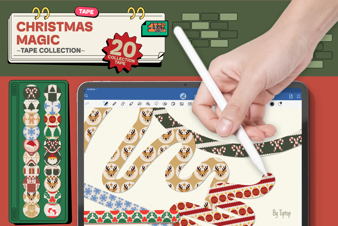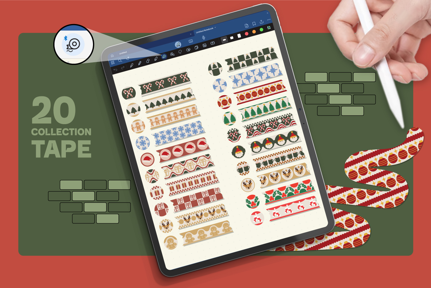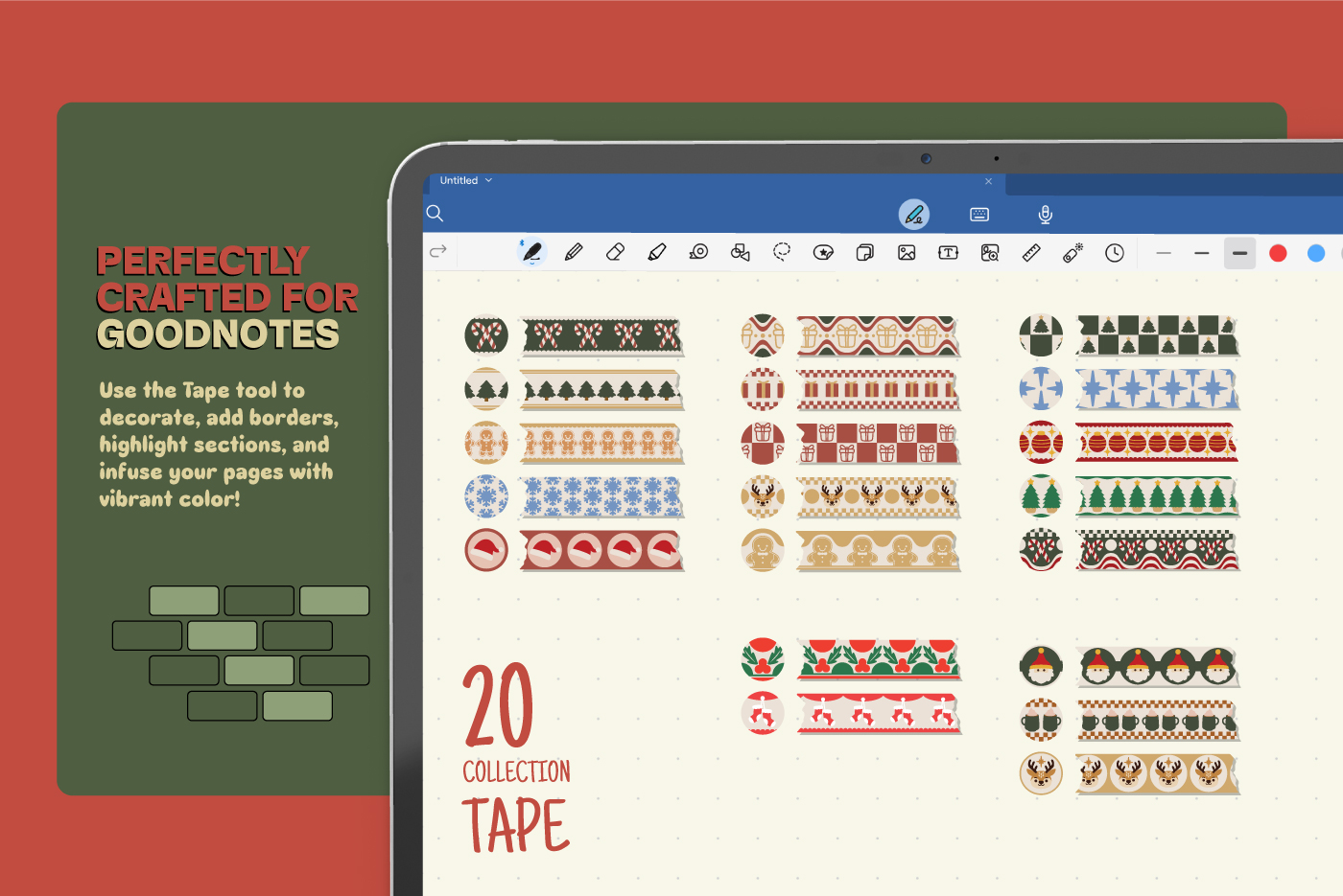 This festive washi tape pack features 20 charming Christmas-themed designs, perfect for digital planners, crafts, and holiday journaling. From gingerbread patterns to ornaments and trees, each strip adds a cozy seasonal touch to your creative projects