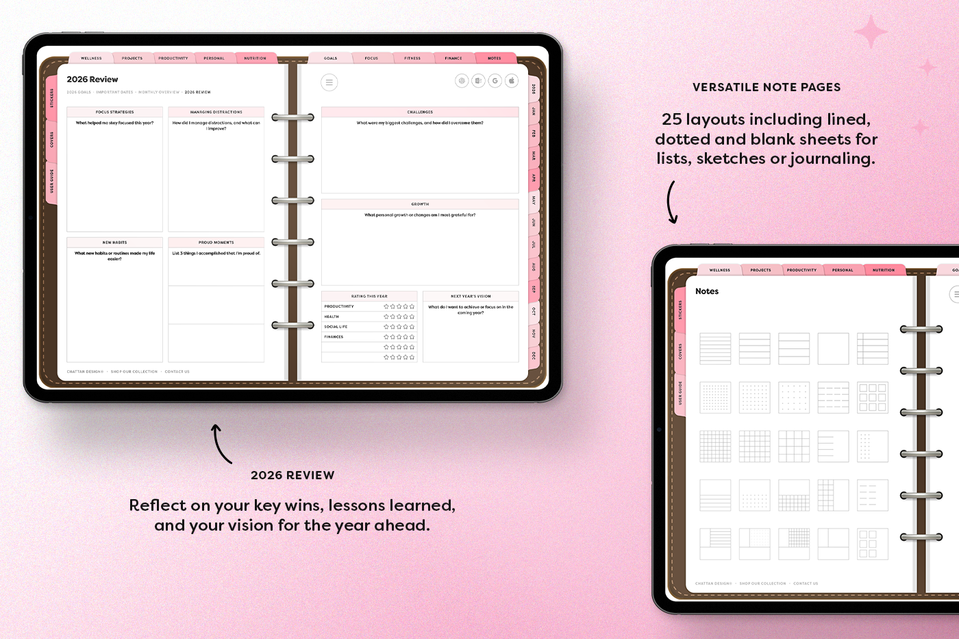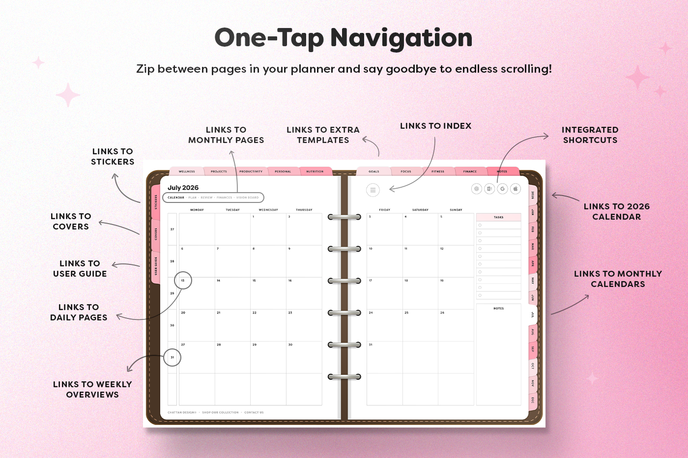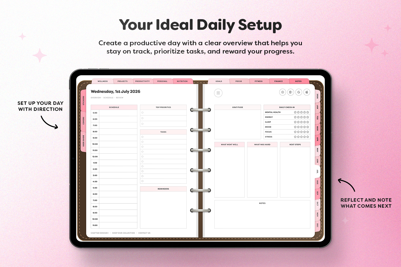 The 2026 ADHD Focus Planner builds on the version that Goodnotes named the best planner for 2025 and gives you a simple way to stay on track without feeling boxed in. Each page is designed to help you organise your day in a way that feels natural, with space for planning, tracking habits, managing tasks, and keeping your thoughts in one place. You get flexible layouts for both busy days and quiet ones, along with digital stickers that make planning feel light and enjoyable. This planner supports the way your attention moves and keeps everything clear, calm, and easy to return to.