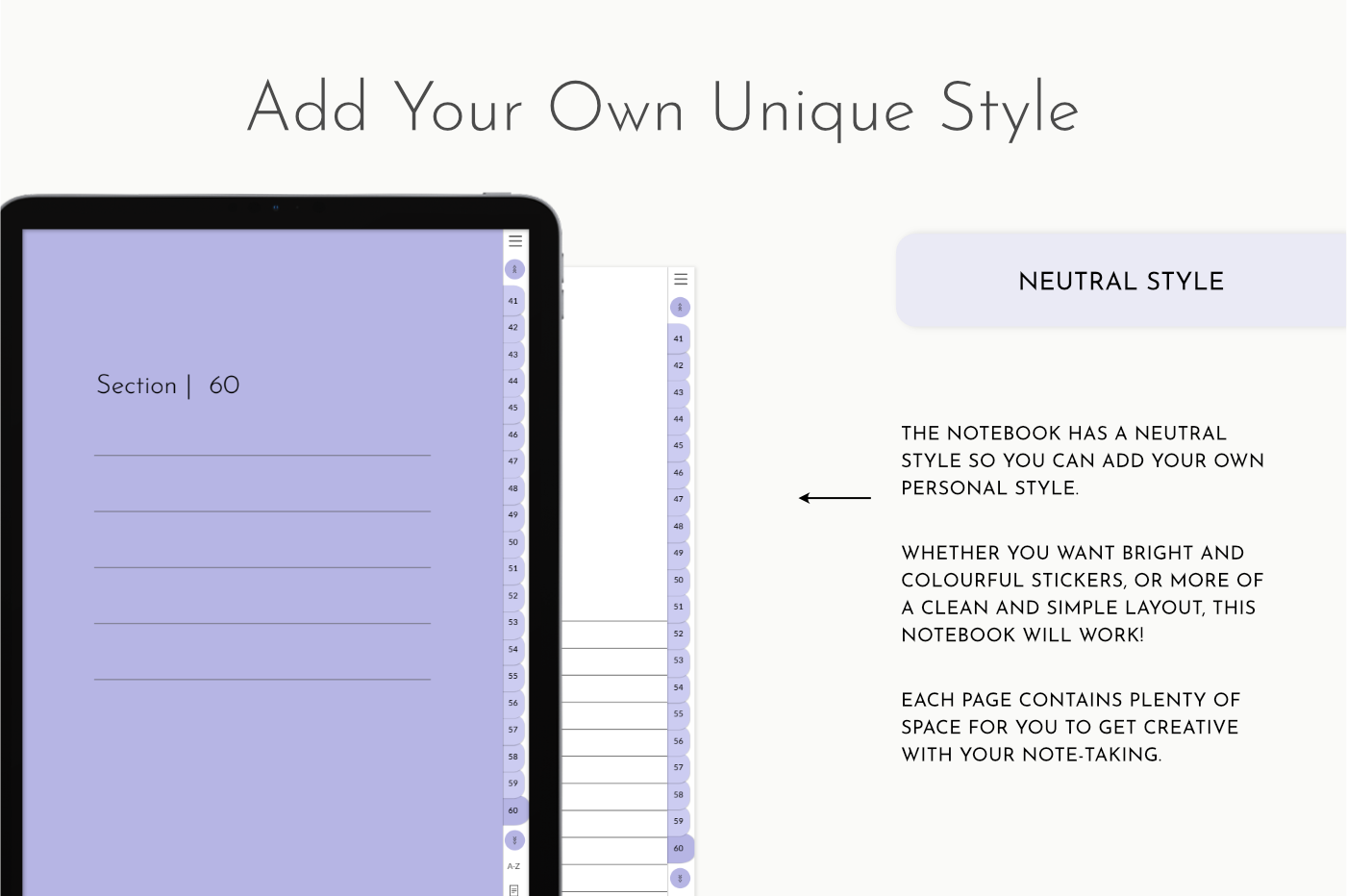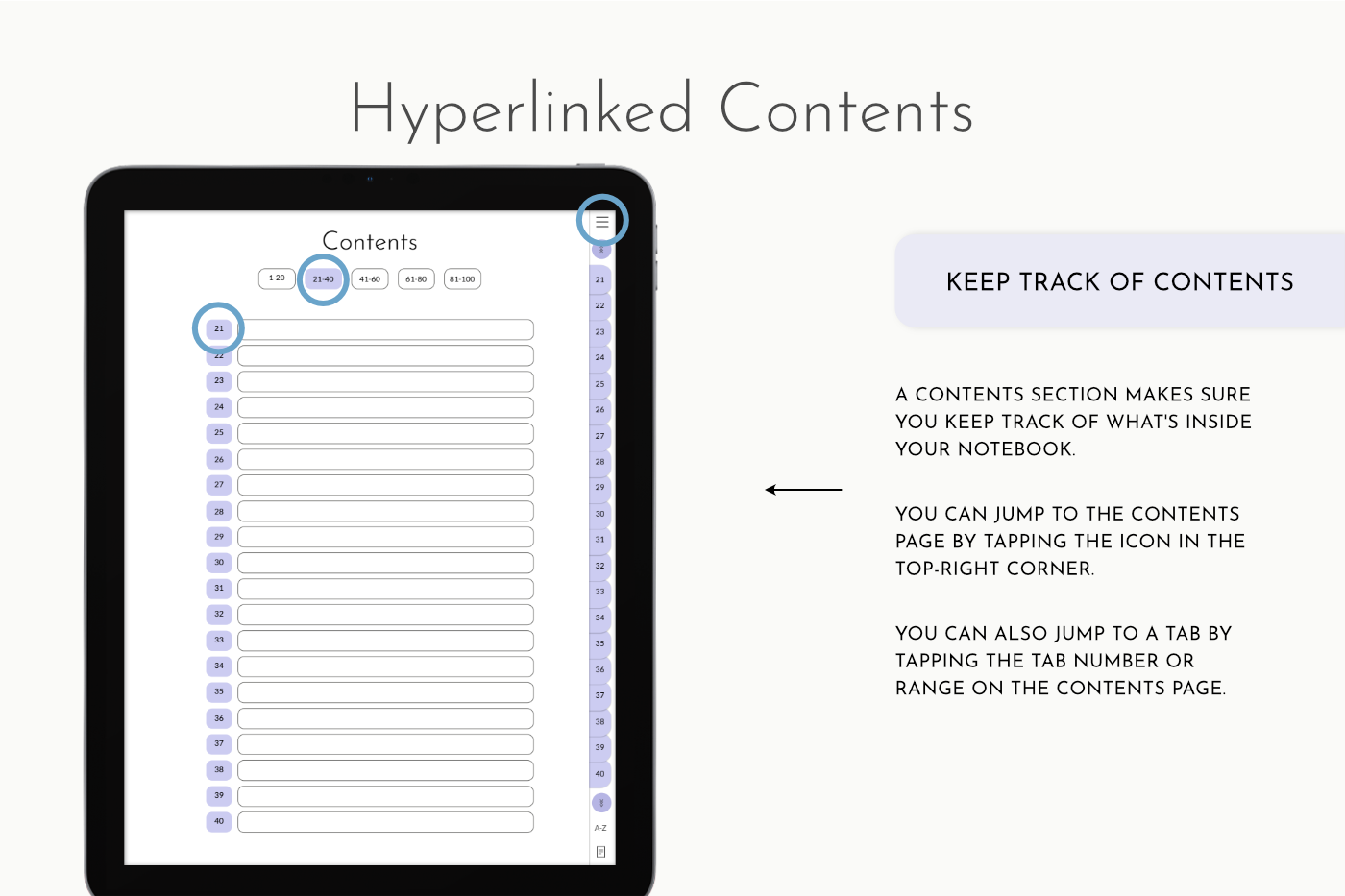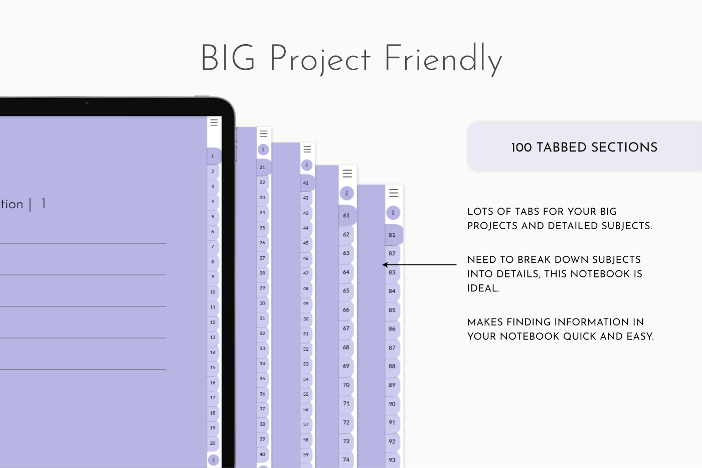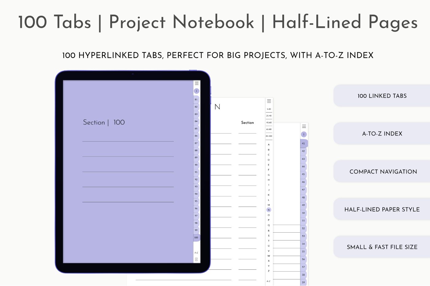 * Scrolling, compact navigation, maximum note-taking space . * Clean, spacious portrait layout gives you plenty of room to write, draw and create. * 100 hyperlinked tabs for big projects or complex subjects. * A-to-Z index keeps your notes organised and quickly find diagrams, facts & figures.