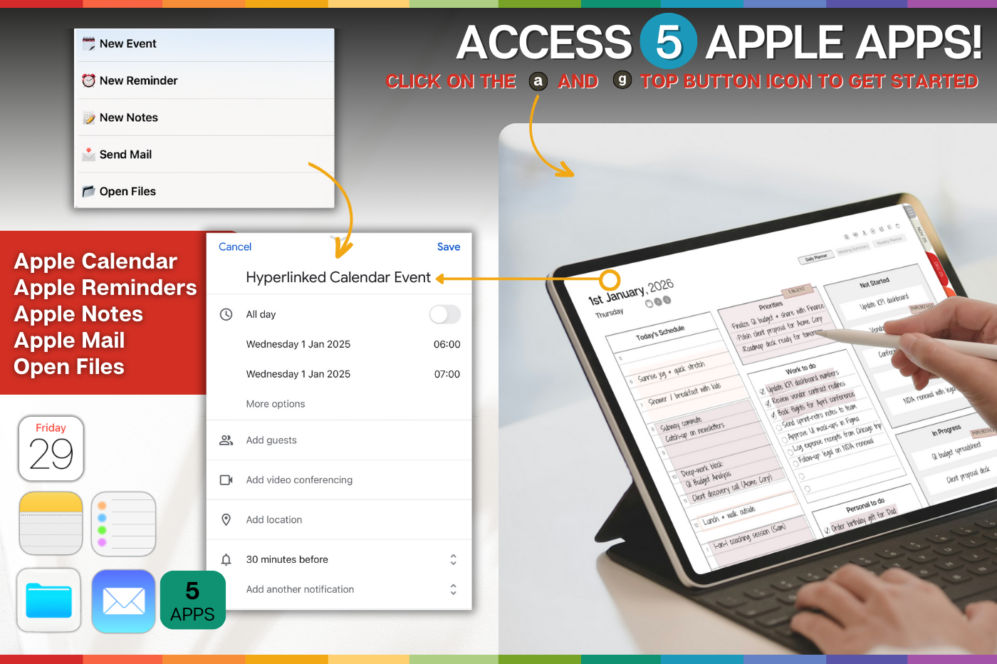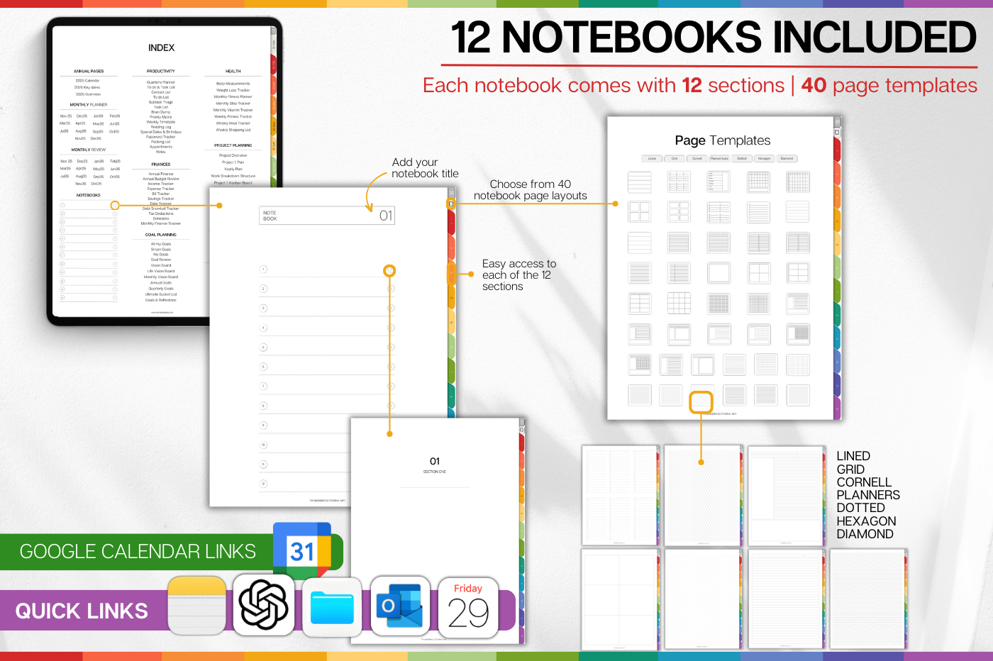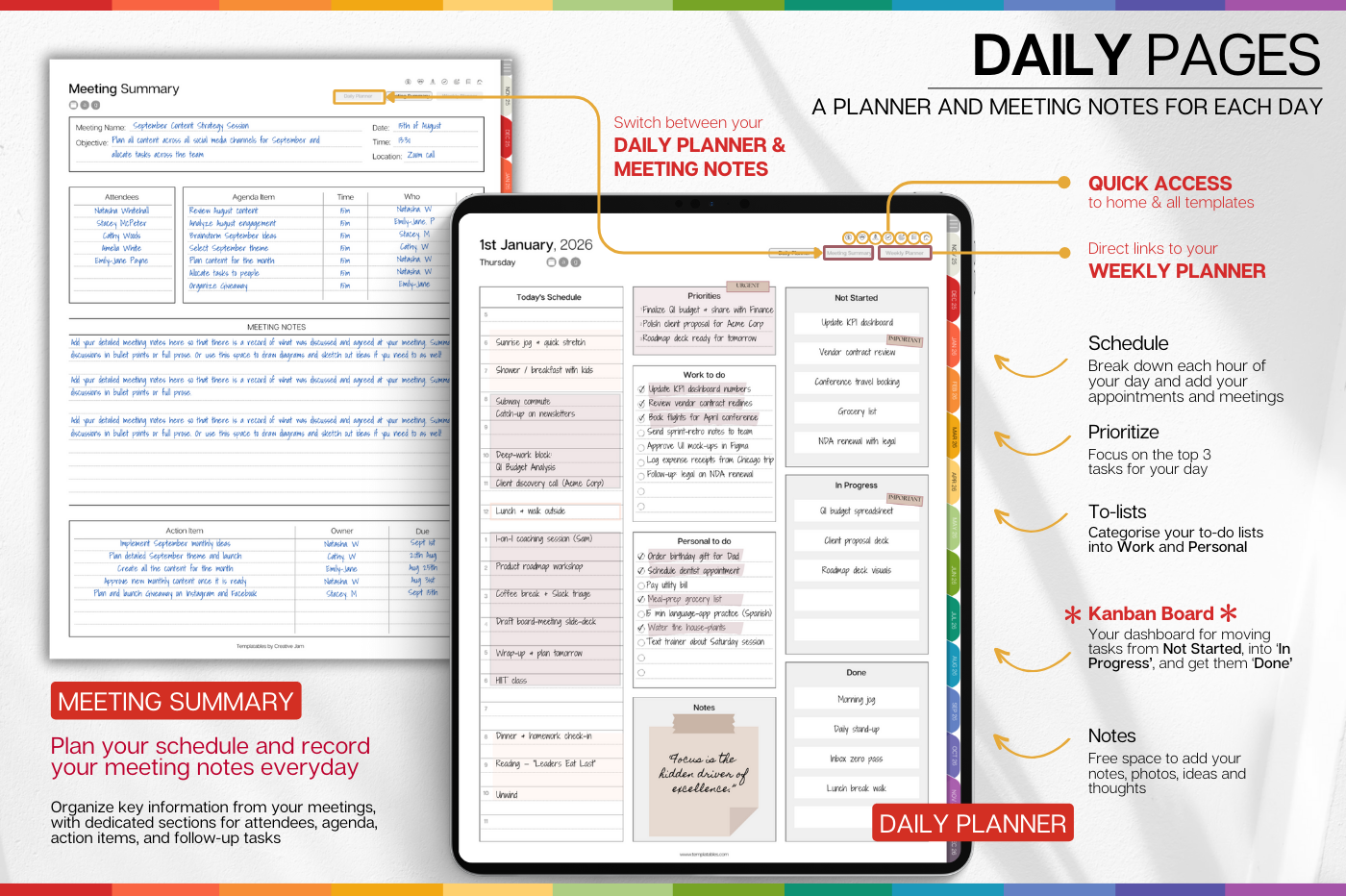 Stay ahead of deadlines, meetings and big ideas with a planner built for modern work. • Daily, weekly, monthly & annual planning pages covering Nov 2025 –Dec 2026 • Drag-and-drop Kanban board on every daily spread • 100+ pro templates: project roadmaps, meeting notes, objectives-and-key-results, budgets & more • One-tap links to Apple & Google calendars for effortless scheduling 🔗 Also integrates with Apple Notes, Apple Files, Apple Mail & Apple Reminders too