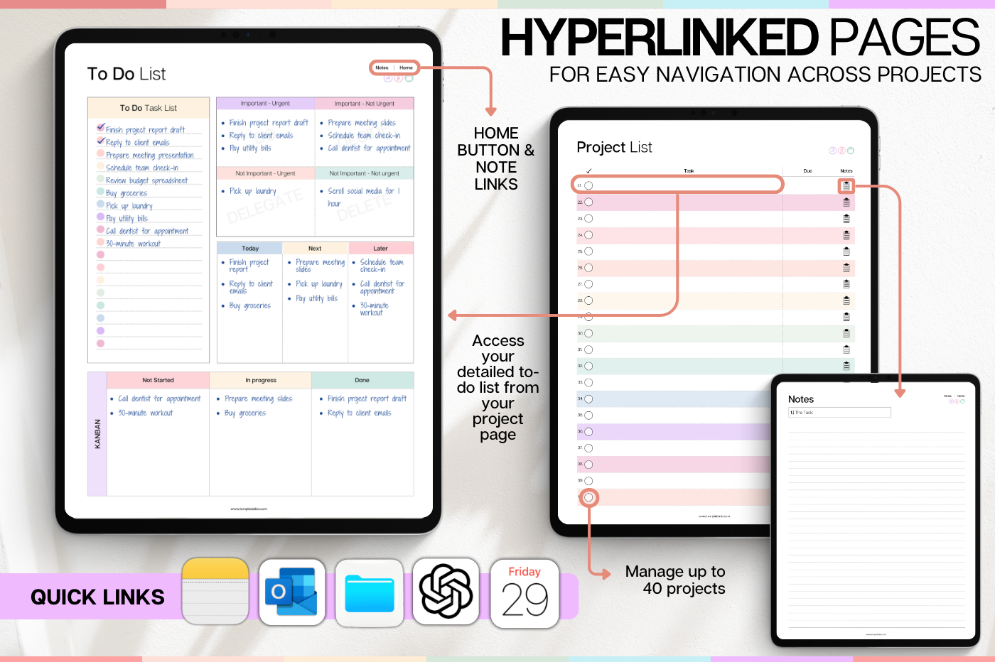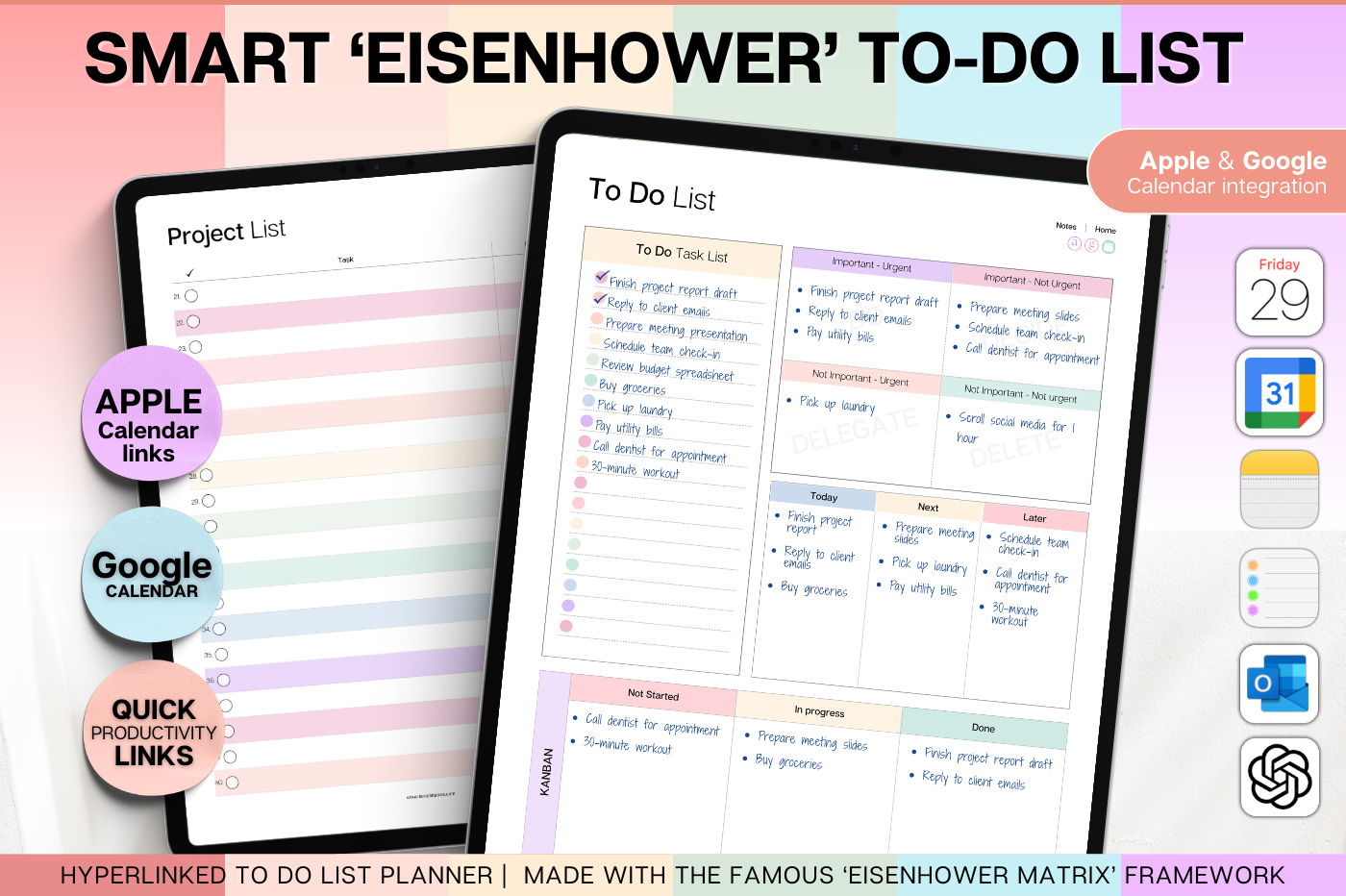 Struggle to prioritize what really matters? This Smart To-Do List uses the famous Eisenhower Matrix to help you focus on what truly matters. • Priority Matrix to sort urgent vs. important tasks • Mange 40 projects • Linked Notes + Kanban views for flexible planning • Apple & Google Calendar integration so deadlines never slip Plan smarter, prioritize better, and achieve more every day