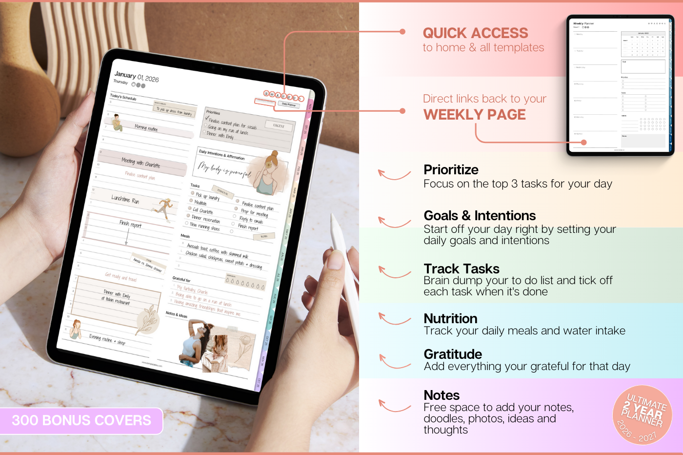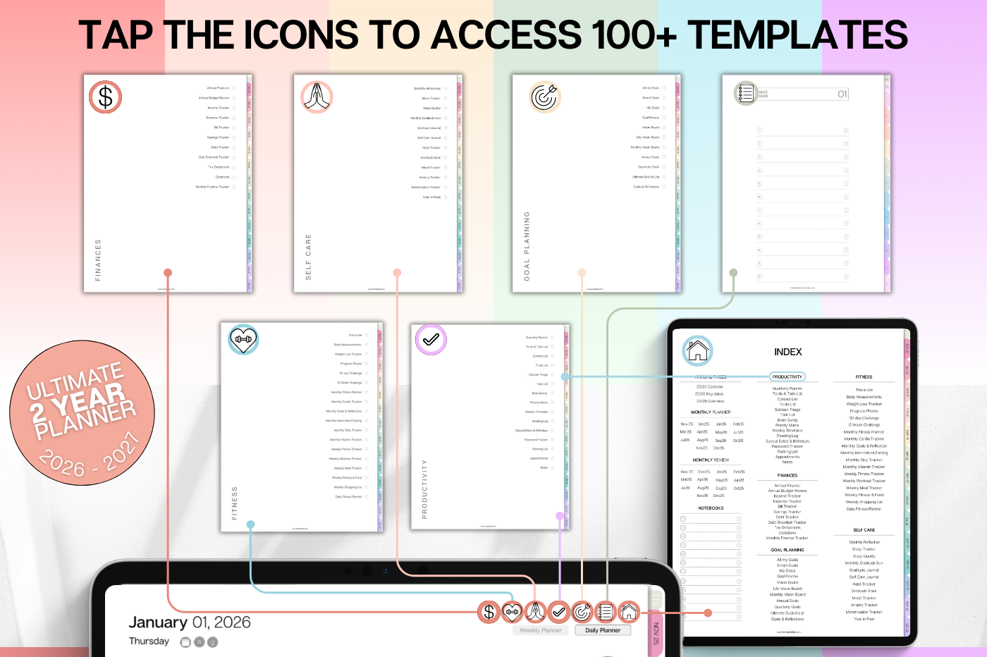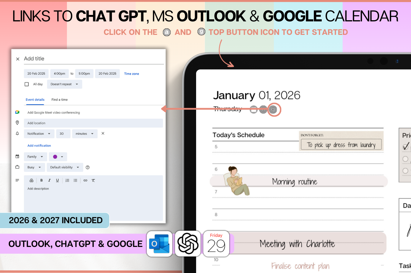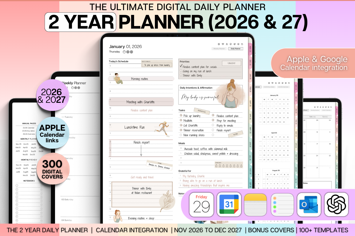 2️⃣ Two years in one! Your ultimate daily planner for 2026 & 2027 = double the value! 🔗 Apple & Google Integration!