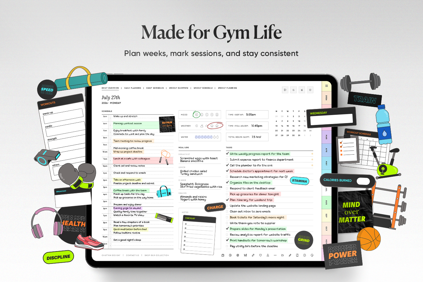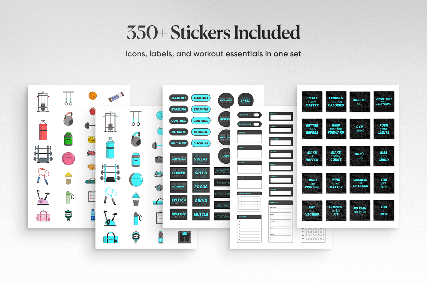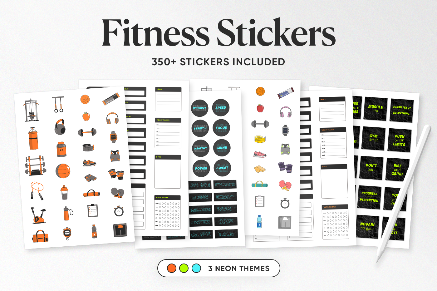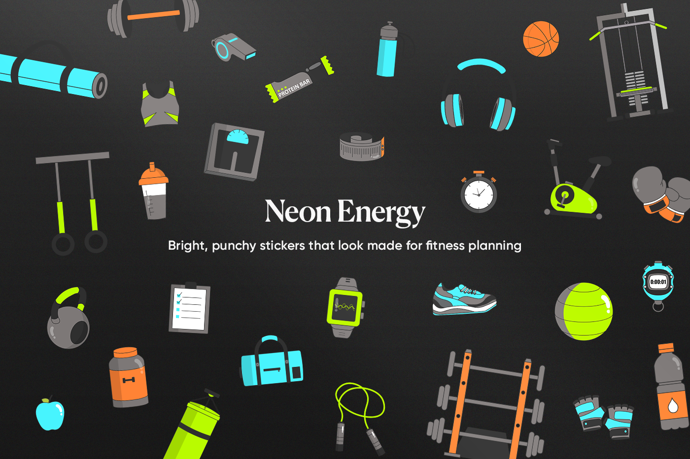 Keep your fitness planning simple and visually satisfying. 350+ neon style stickers designed to fit neatly into your layouts while still standing out. Use them to track workouts, routines, and progress in a way that feels motivating, not messy.