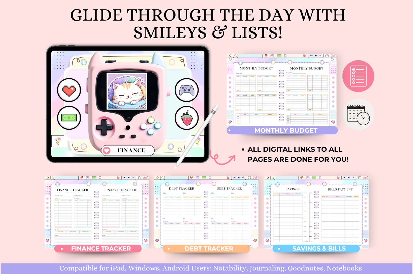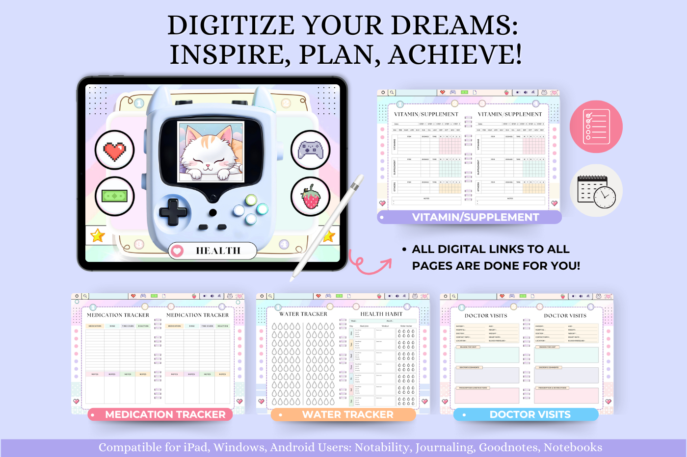 • • HEALTH & FITNESS: - Water Tracker. - Health Habit Tracker, Doctor Visits, Vitamin/Supplement, Medical Appointment & Medication Tracker. • • PRODUCTIVITY: - To-Do List: Organize tasks, dreams, and life goals. - Reading Tracker & Book Journal. - Cleaning Checklist, Project Planner & Meeting Notes. • • FINANCE: - Monthly Budgeting. - Expense Tracker, Saving Tracker & Bill Tracker. - Debt Payment Tracker: Monitor and pay off debts. - Order Tracker & Finance Planner.