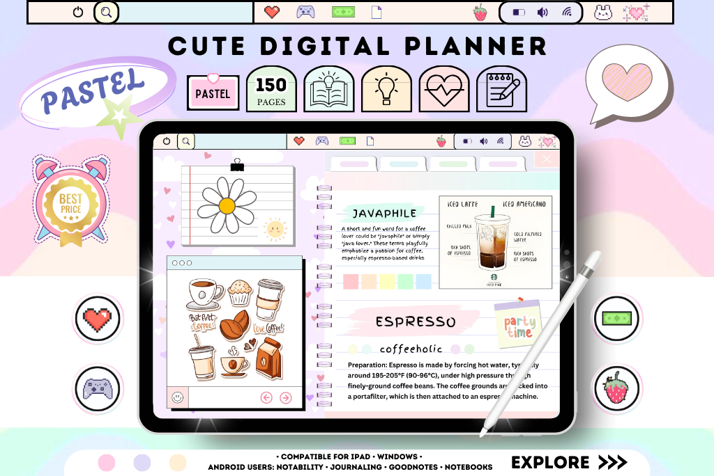 This product is compatible with Goodnotes 6 on Apple, Android, Windows, and Web devices