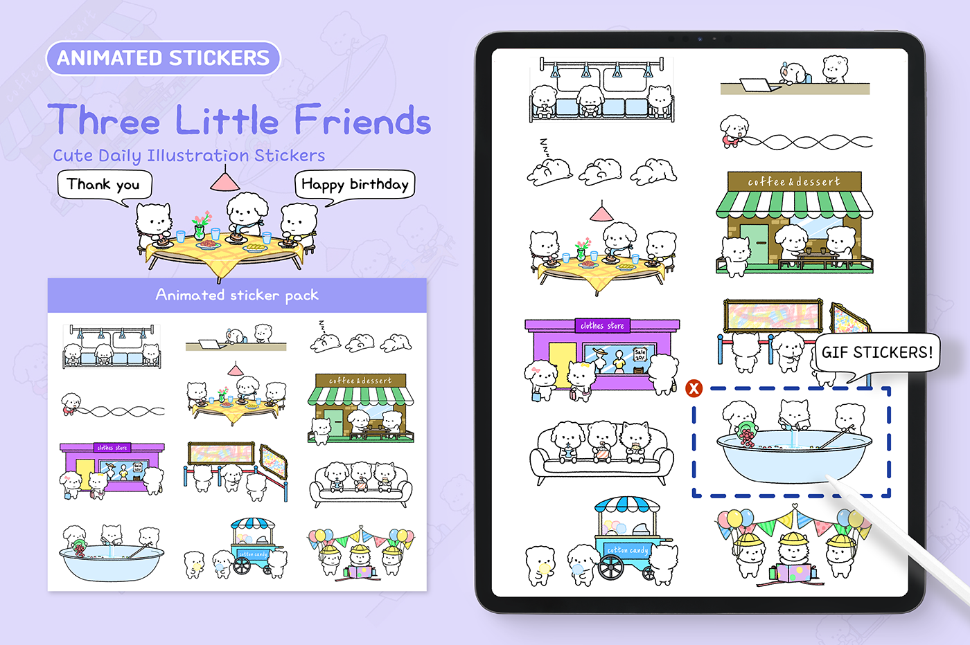 A cute dog sticker featuring 12 animated stickers. Decorate the special moments of your everyday life adorably.