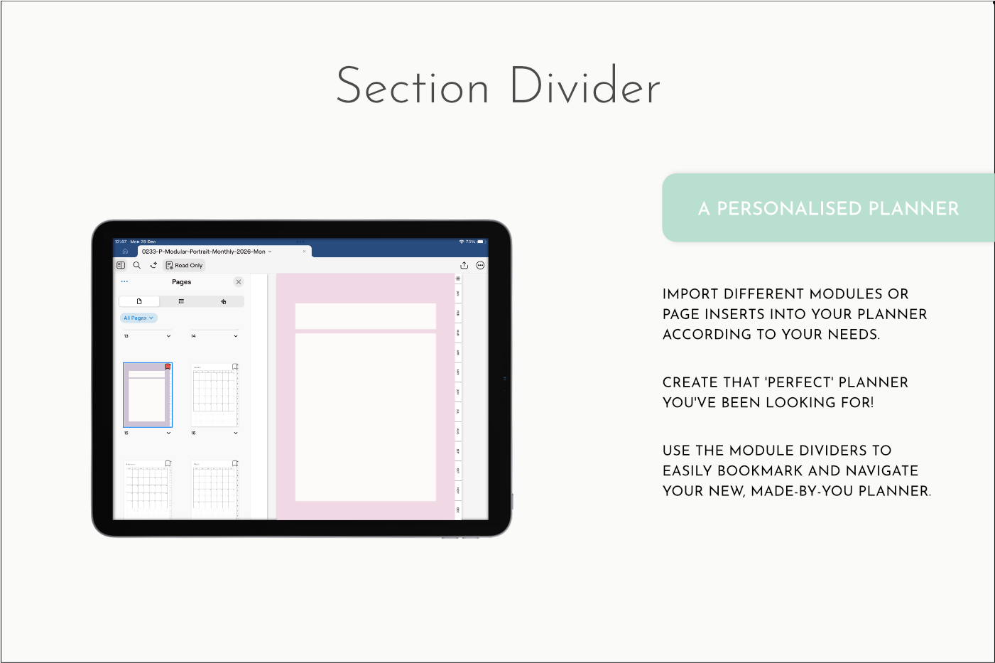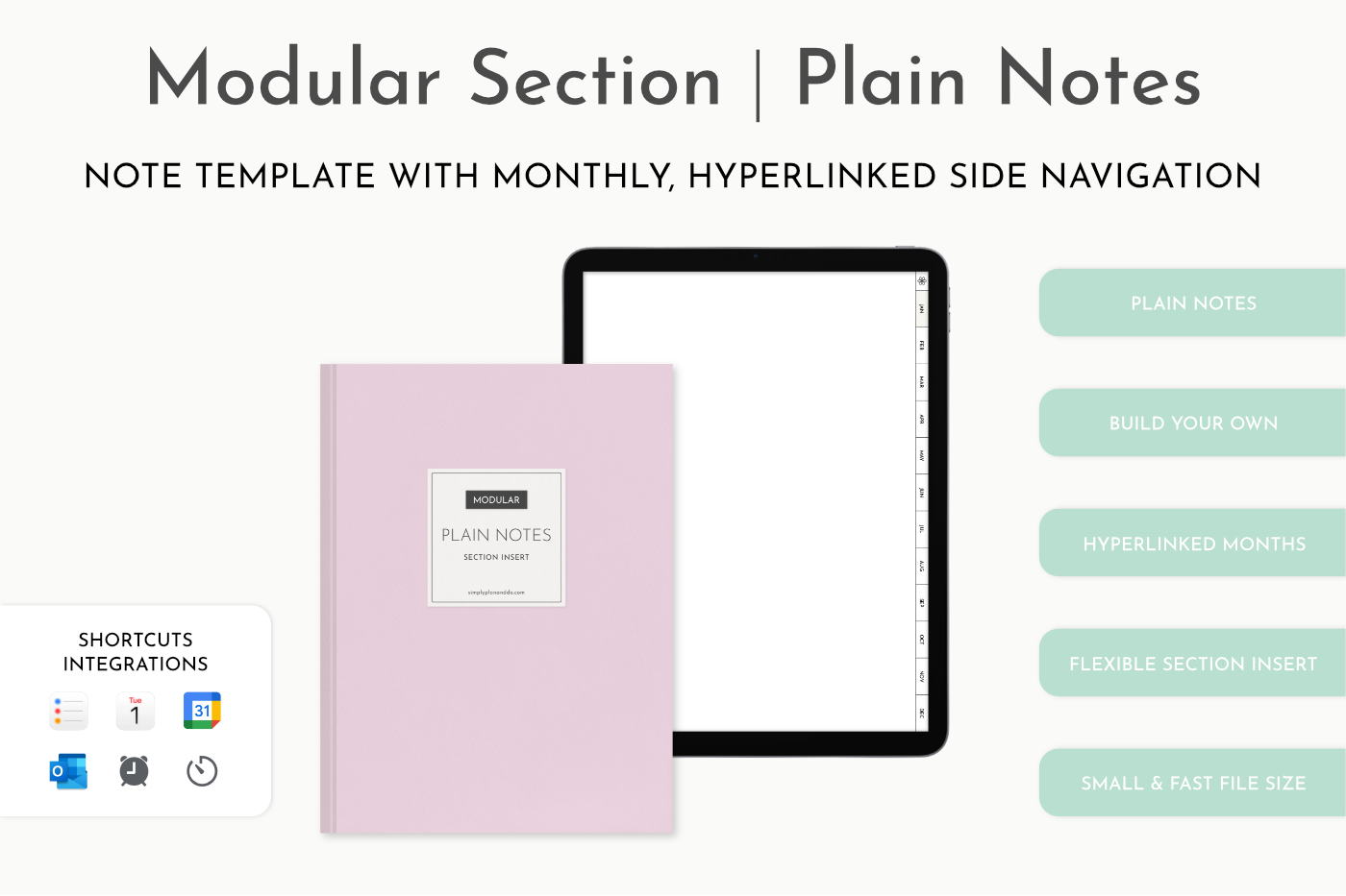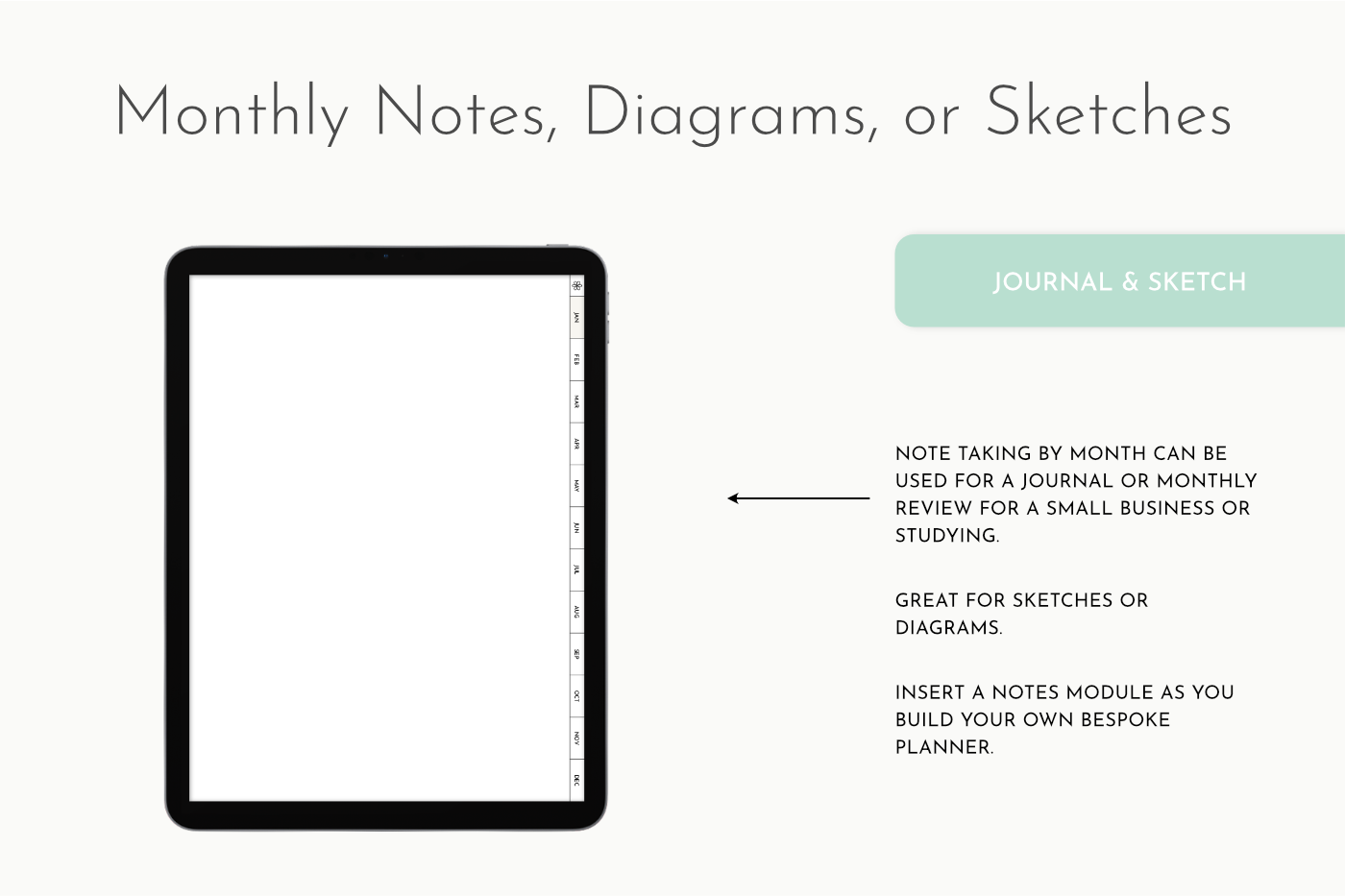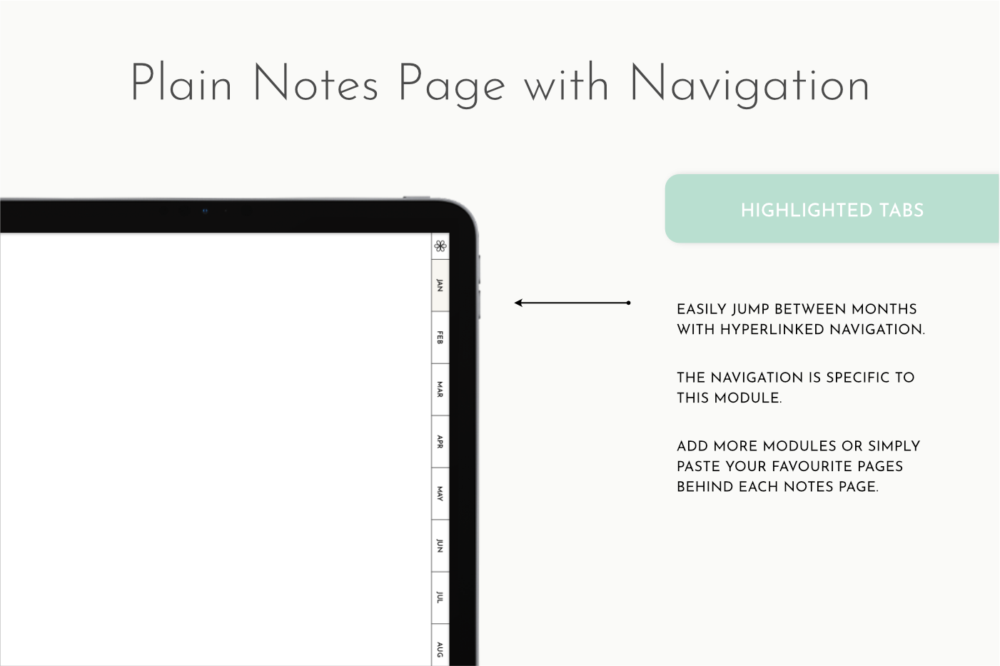 Plain Notes Section with hyperlinked side menu. Perfect for inserting into existing planners or notebooks. Use for anything that needs organising by month. You can also add other Single Page Inserts behind the notes pages.