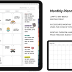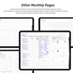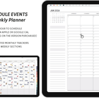 This all-in-one digital planner lets you schedule events, preview monthly, weekly, and daily pages, and manage upcoming events with ease. Hyperlinked sections include budget, habit, mood, workout, goals, travel, routines, trackers, lists, gratitude, and more, plus five project folders and versatile templates to keep your life and work organized.