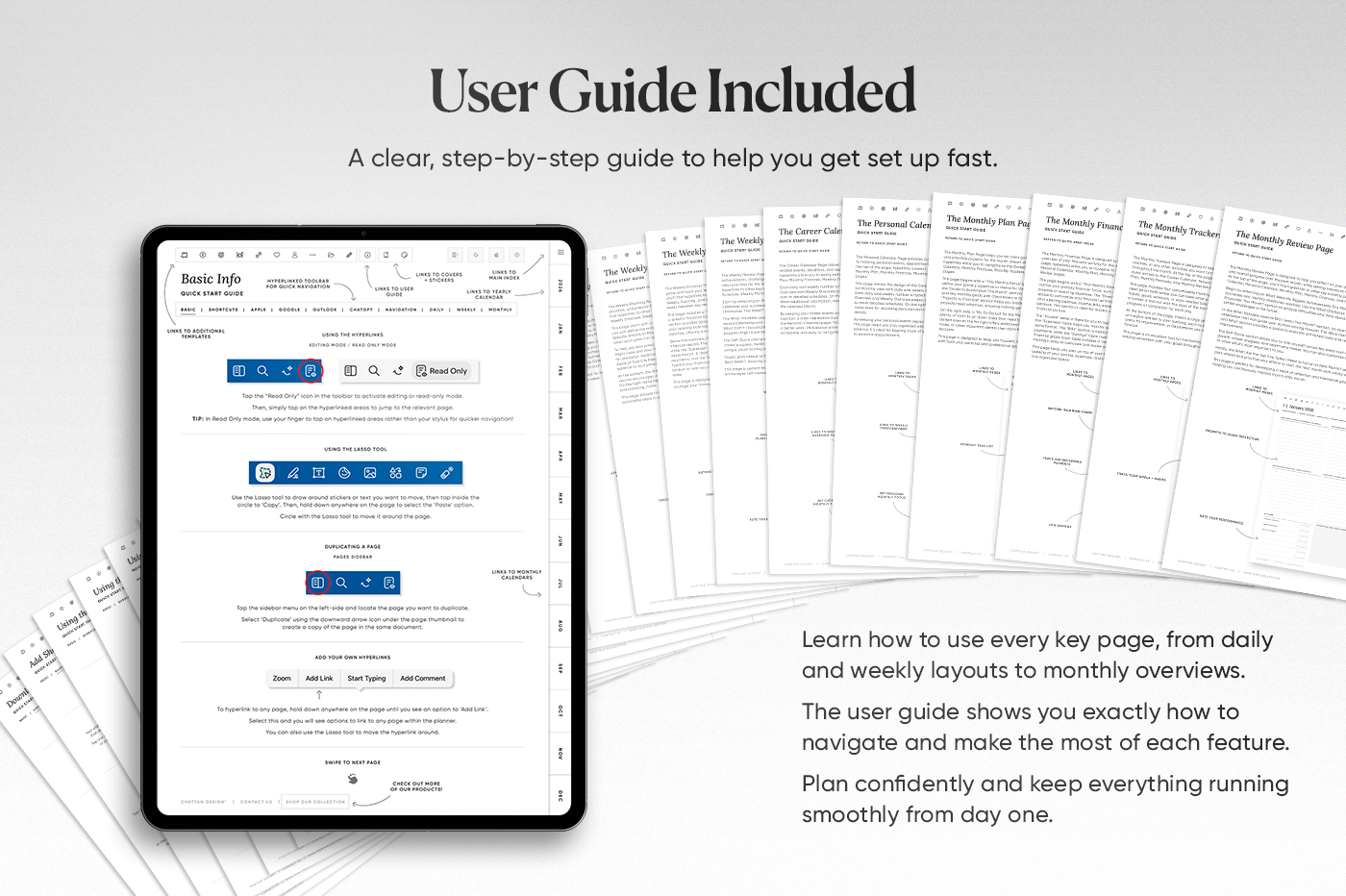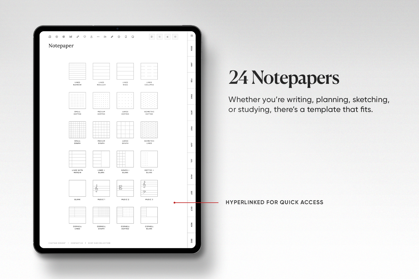 Chattan Design is a graphic design studio based in Scotland that specialises in creating sleek and modern digital planners. Focused on productivity, our mission is to create functional and intuitive tools for enhanced organisation. Our designs effortlessly integrate into the lives of professionals, students, and efficiency-seekers. Transform your planning into an enjoyable experience.