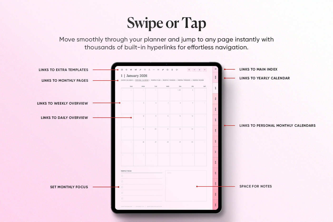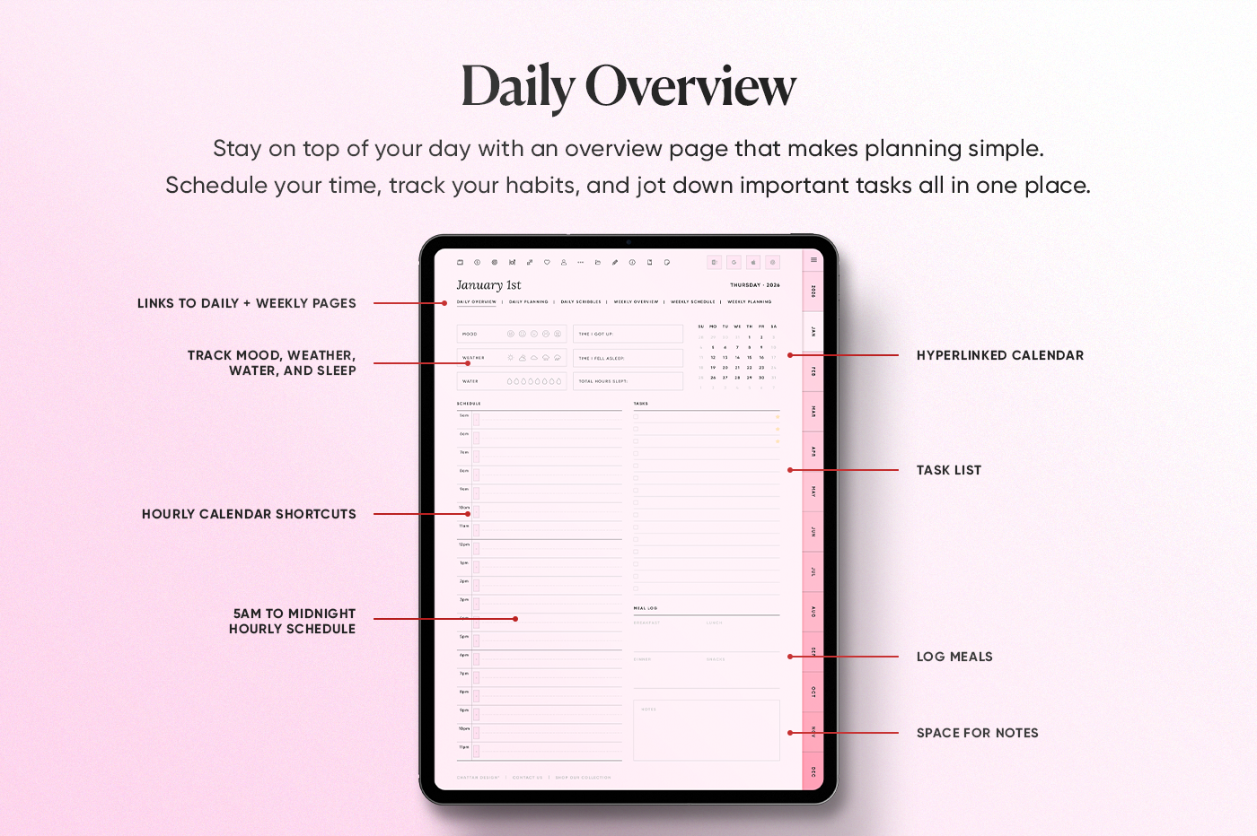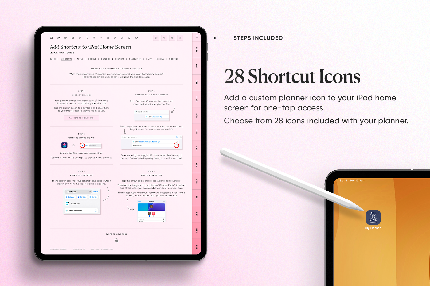 The 2026 All-in-One Planner keeps your year organised in one place with daily, weekly, monthly, and yearly pages in multiple styles so you can plan your way. This planner is fully hyperlinked for fast navigation, includes 600+ stickers, and has built-in shortcuts for Apple Calendar, Google Calendar, Outlook, and ChatGPT. Clean, practical, and made to keep you consistent all year.