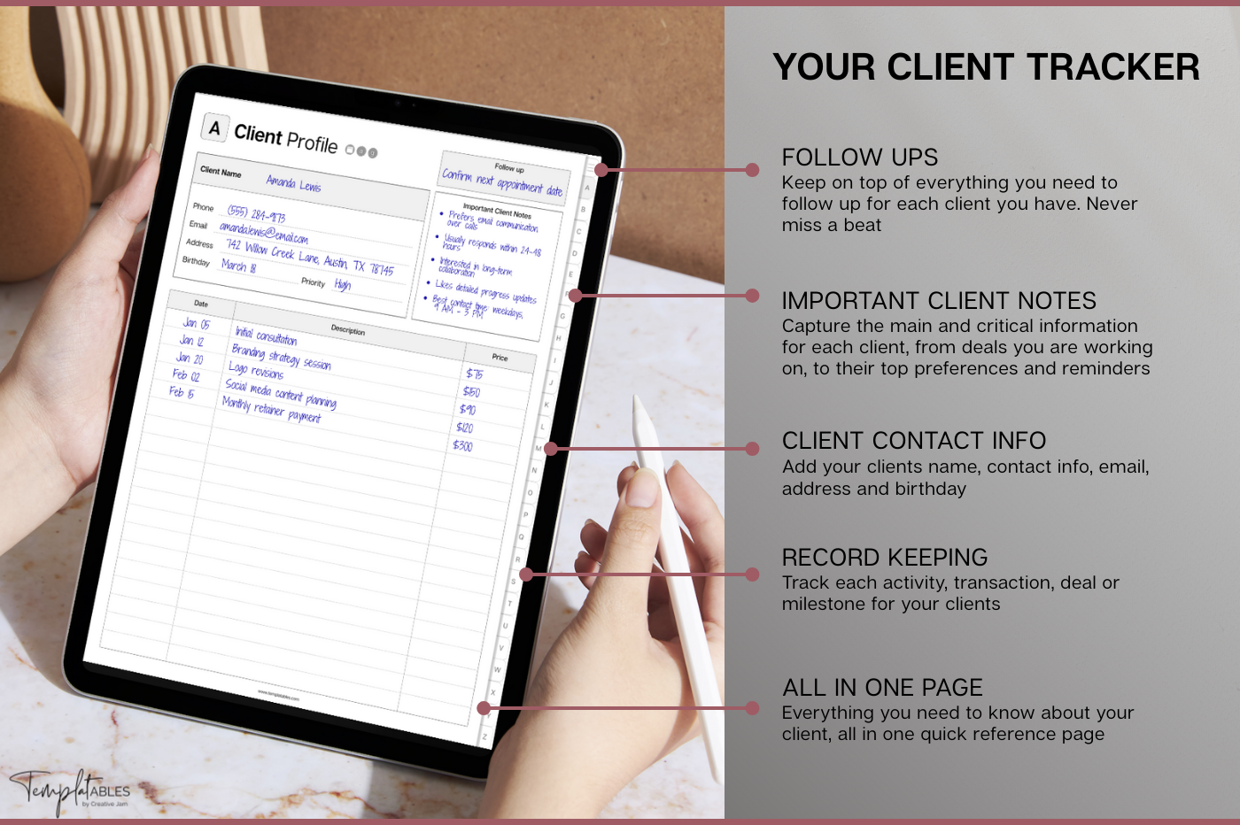 Smart Digital Client Tracker to organise, manage & access every client in one place 🔗 Apple & Google integration