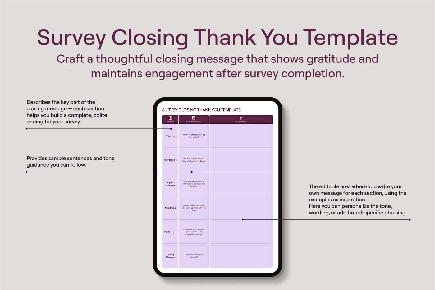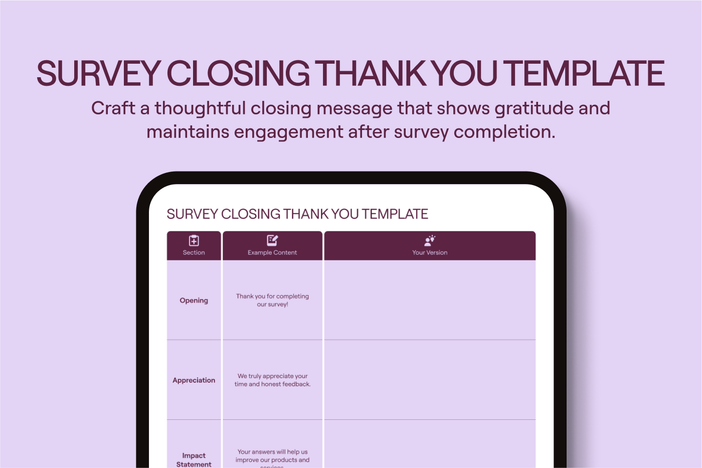 Thank participants for their time and feedback. This builds trust and improves engagement for future surveys.