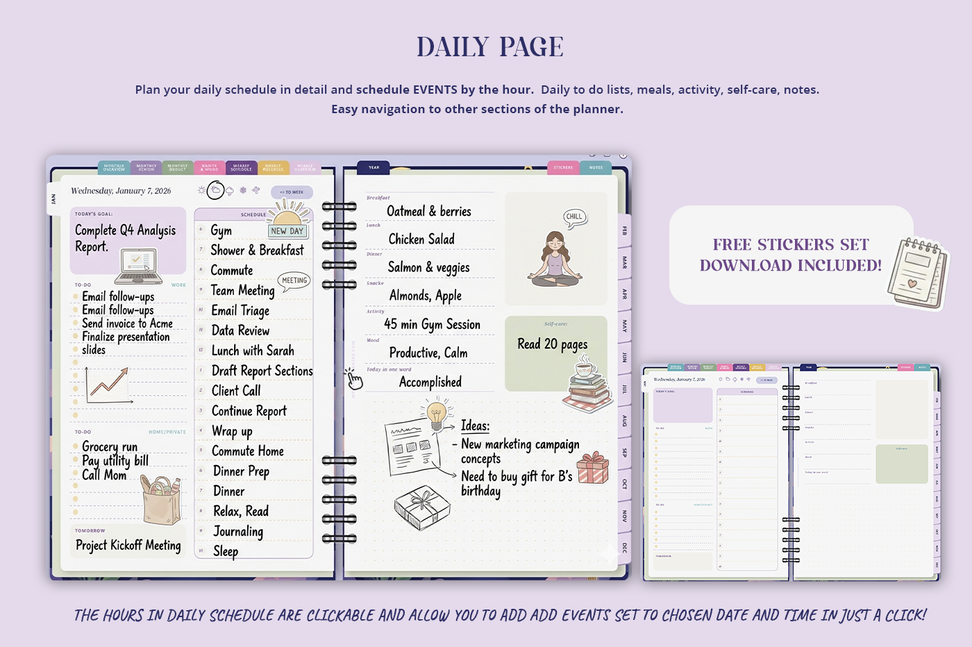 Experience Daydream, a soothing lilac-toned digital planner designed to bring calm and clarity to your day. With full Apple Calendar integration, you can set notifications, preview monthly, weekly, and daily layouts, view upcoming events at a glance. Thoughtfully organized pages include dated monthly, weekly, and daily planning, wellness, budget, habits, mood tracking and project folders for effortless, all-in-one life planning.