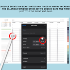Designed for long-term planning and productivity, it includes yearly, monthly, and dated weekly pages to keep your goals and schedule in perfect sync. Includes two weekly layouts—a clean overview and an interactive schedule view that lets you instantly create events by clicking on your desired time slot, saving you from manual entry. Perfect for professionals and planners who want a structured way to plan ahead through 2026, 2027, and 2028.