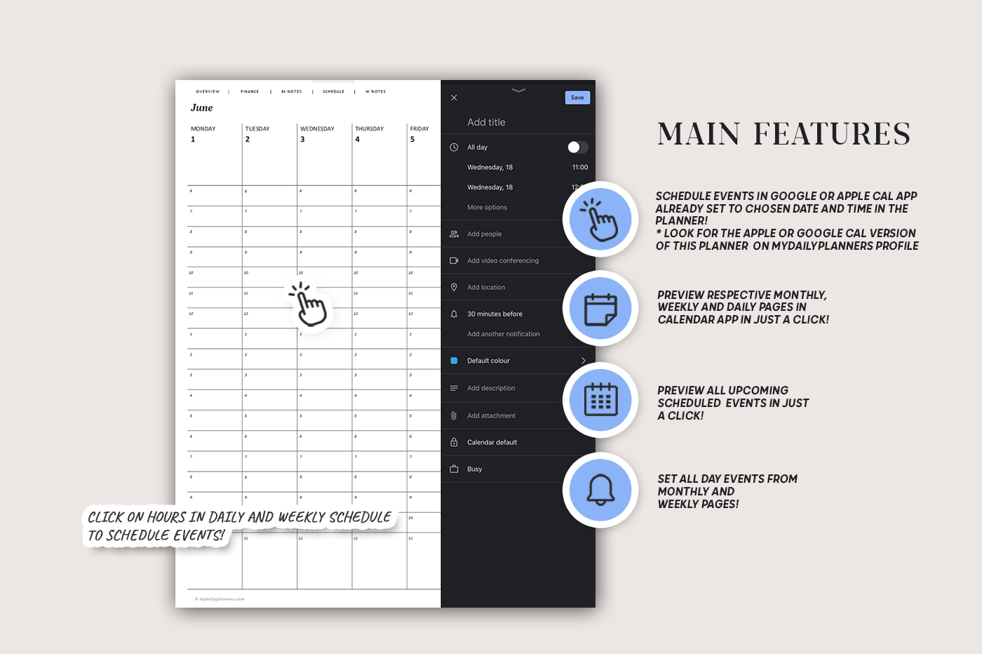 Plan 2026 and 2027 with this all in one digital planner featuring one-click scheduling to your Apple Cal.