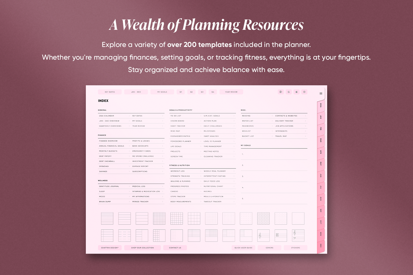 Chattan Design is a graphic design studio based in Scotland that specialises in creating sleek and modern digital planners. Focused on productivity, our mission is to create functional and intuitive tools for enhanced organisation. Our designs effortlessly integrate into the lives of professionals, students, and efficiency-seekers. Transform your planning into an enjoyable experience.