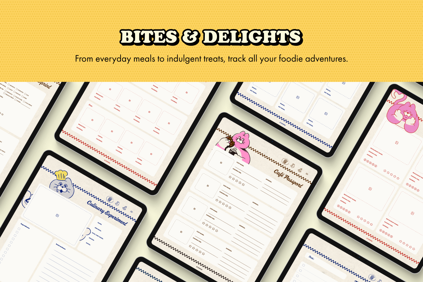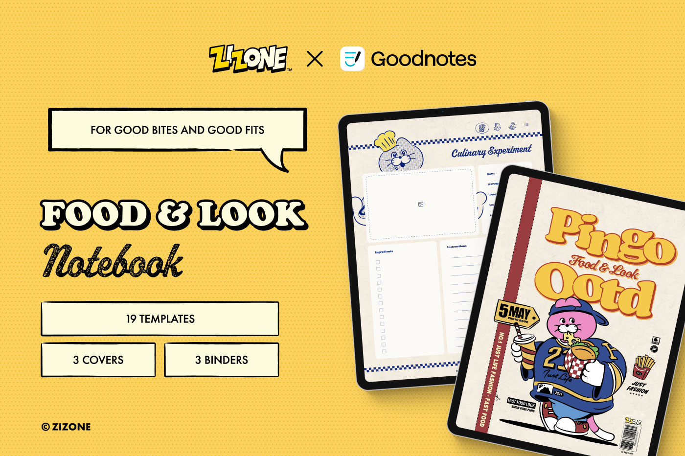 An adorable ZIZONE themed A4 digital Food & Look Notebook for Goodnotes, perfect for those who want a playful yet organized space.