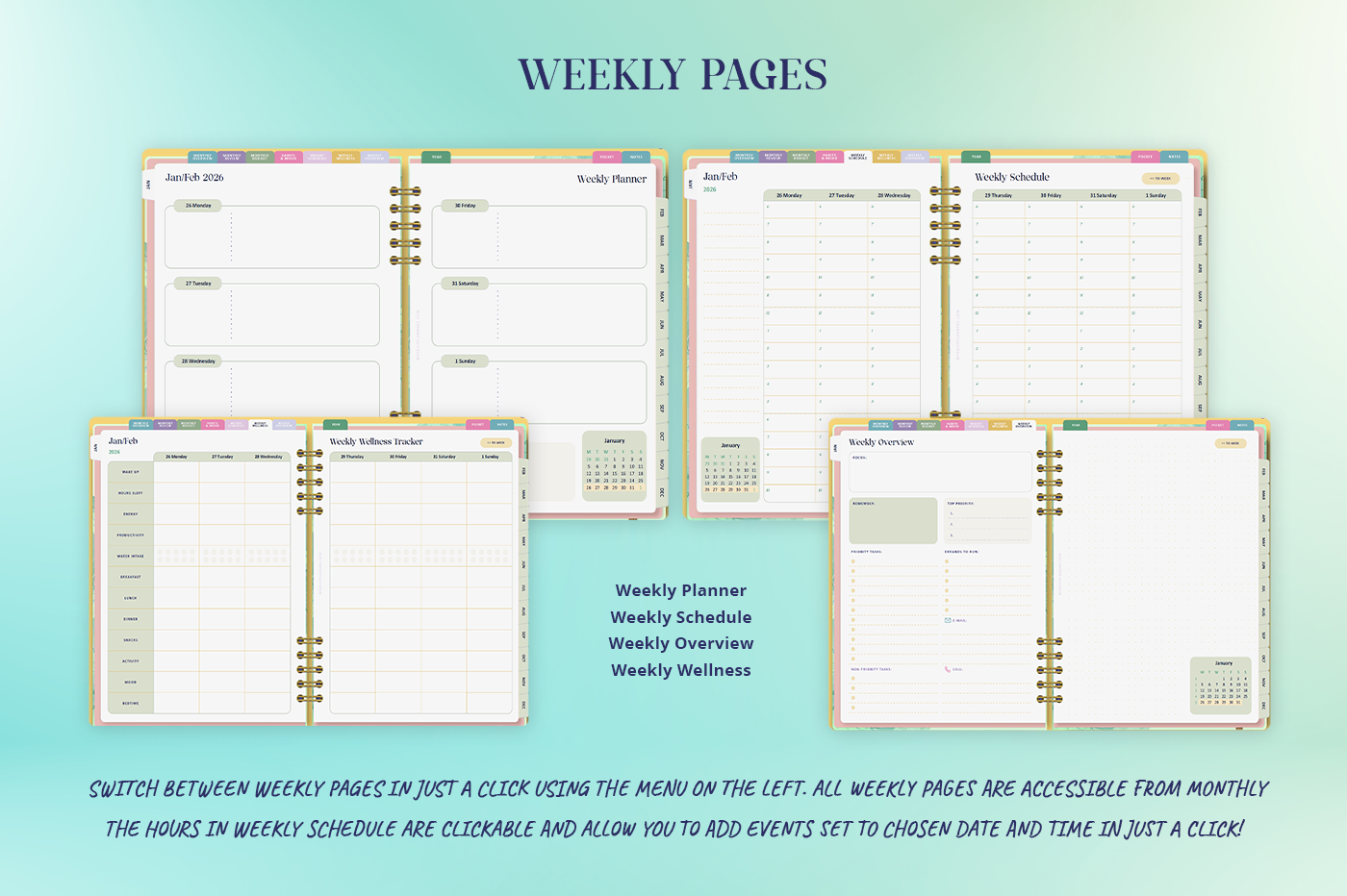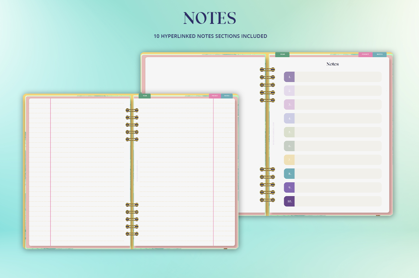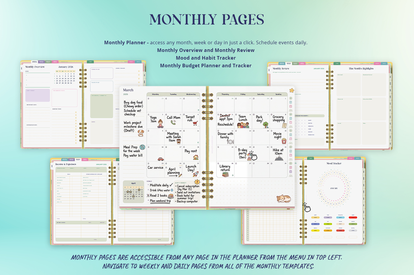A soothing mint -toned digital planner designed to bring calm and clarity to your day. With full Google Calendar integration, you can set notifications, preview monthly, weekly, and daily layouts, view upcoming events at a glance. Thoughtfully organized pages include dated monthly, weekly, and daily planning, wellness, budget, habits, mood tracking and project folders for effortless, all-in-one life planning.