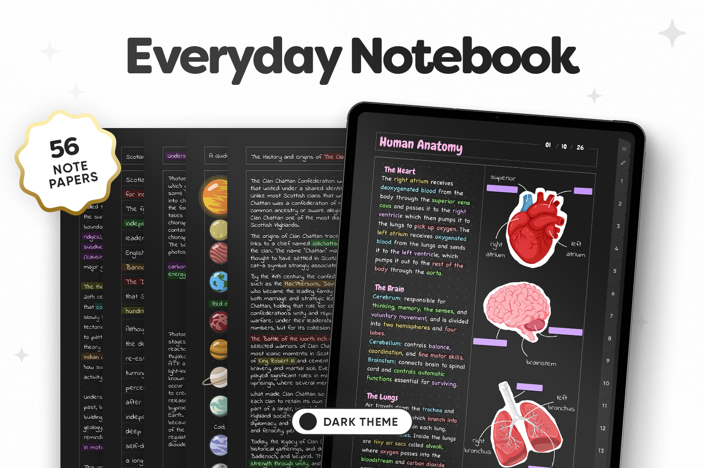 The Everyday Notebook is designed to keep your notes, plans, and ideas all in one place without overcomplicating things. It’s structured into 15 sections with 10 entries in each, giving you a clear layout while still keeping it flexible. Inside, you can choose from 56 note templates and use them however you like across each entry. It also includes the Daily Essentials Sticker Pack, so you’ve got a full set of tools to organise, highlight, and personalise your pages as you go.